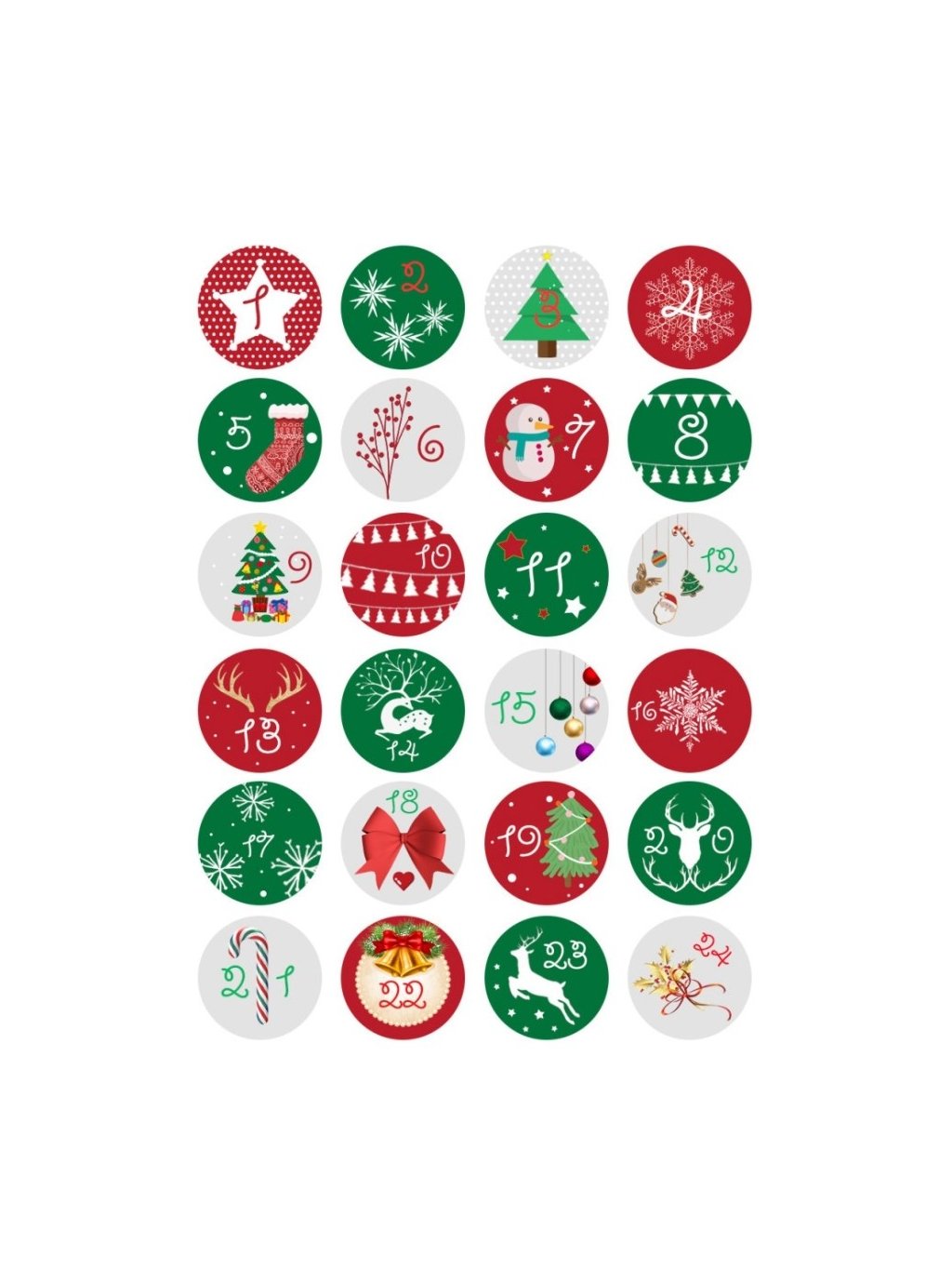 Samolepky Adventní, ČERVENO-ZELENO-BÍLÁ čísla 1-24, 1arch