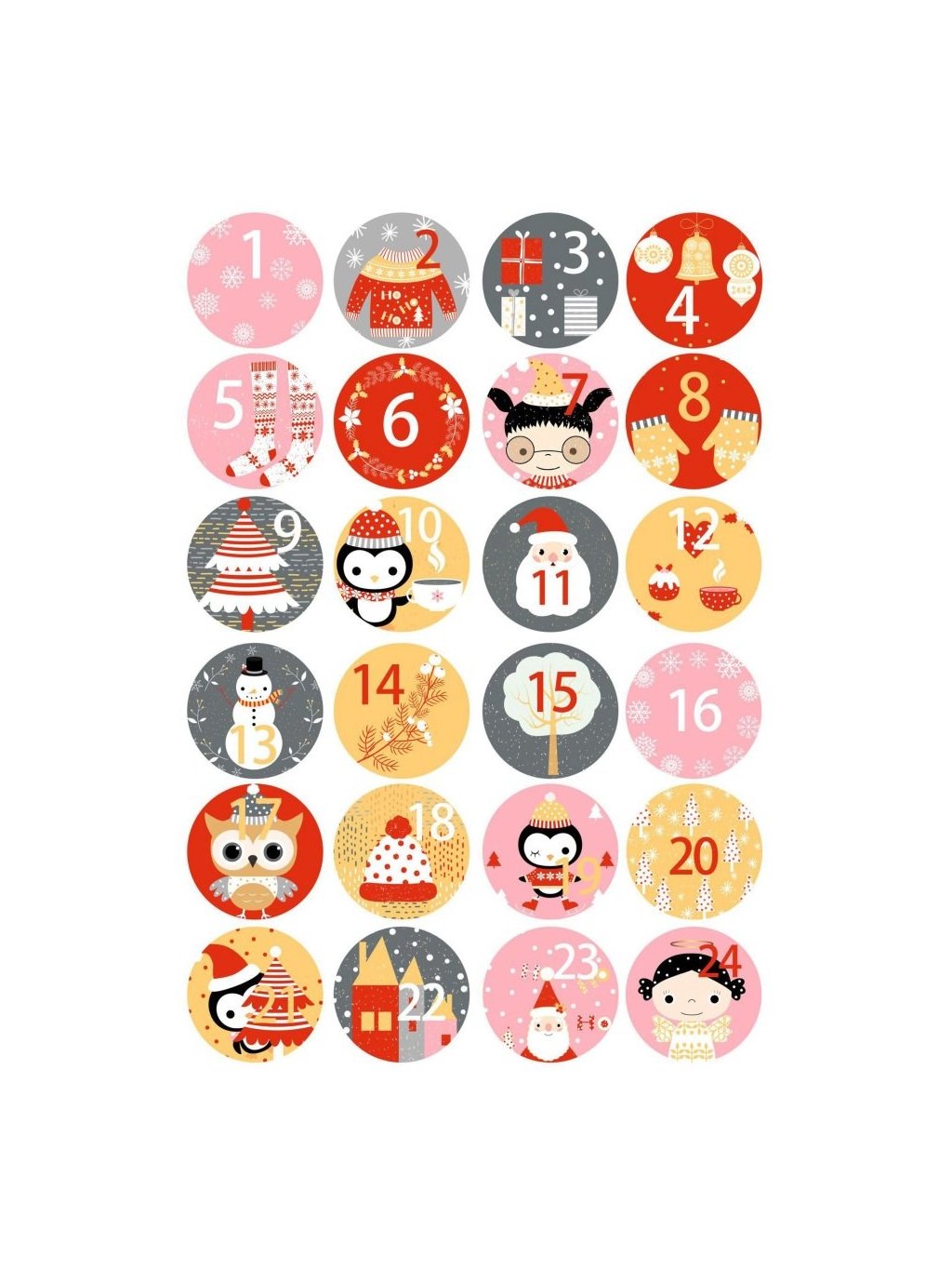 Samolepky Adventní, PASTELOVÁ, BAREVNÁ čísla 1-24, 1arch