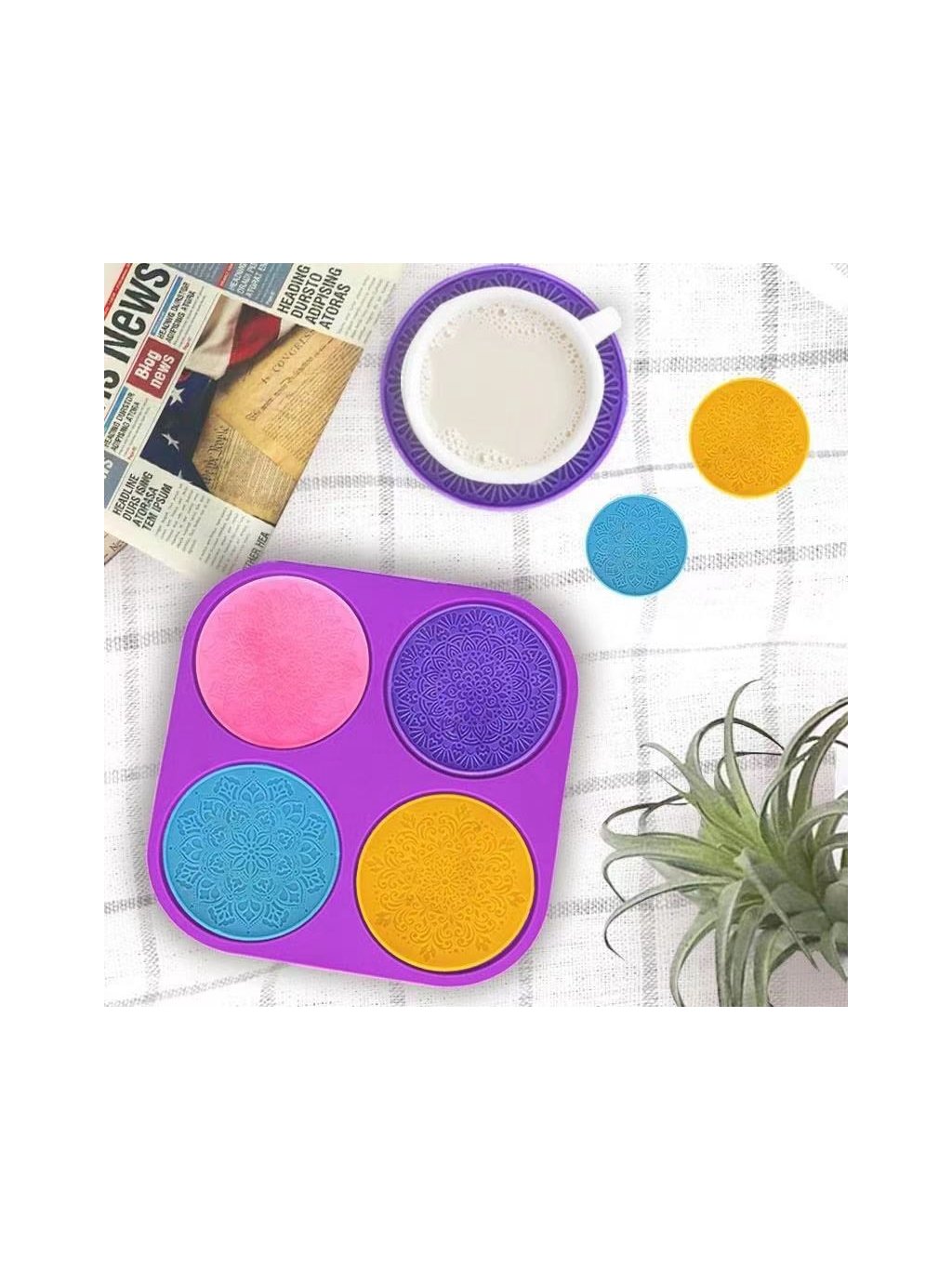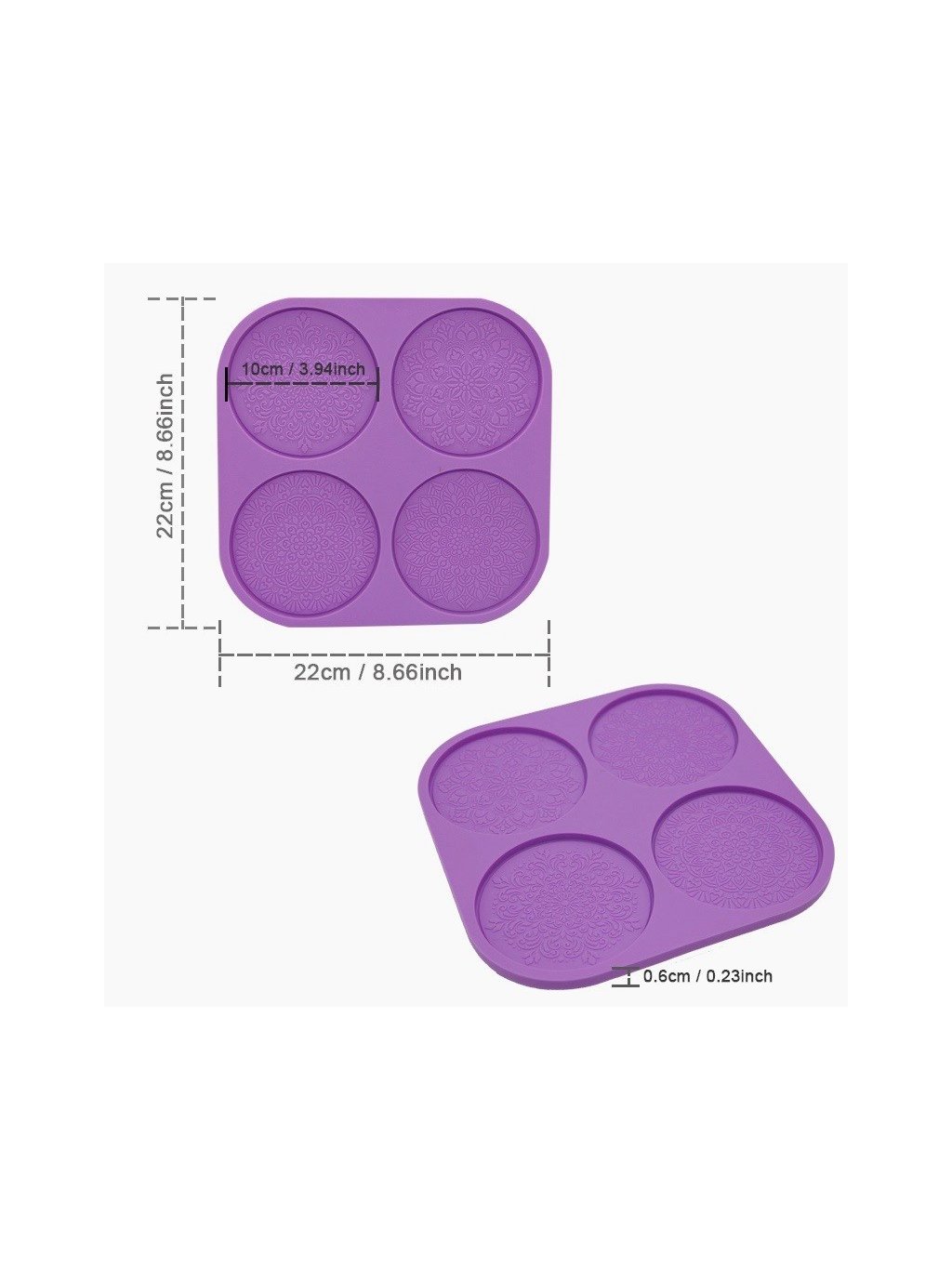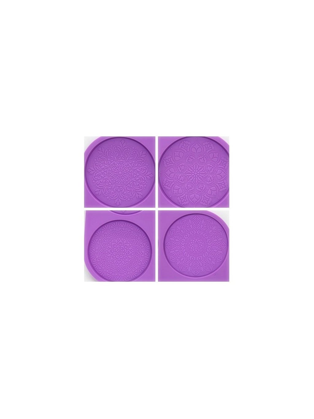 Silikonová forma, na výrobu podtácků, fialová, MANDALY, 4 styly, 22 x 22 cm / 1 kus