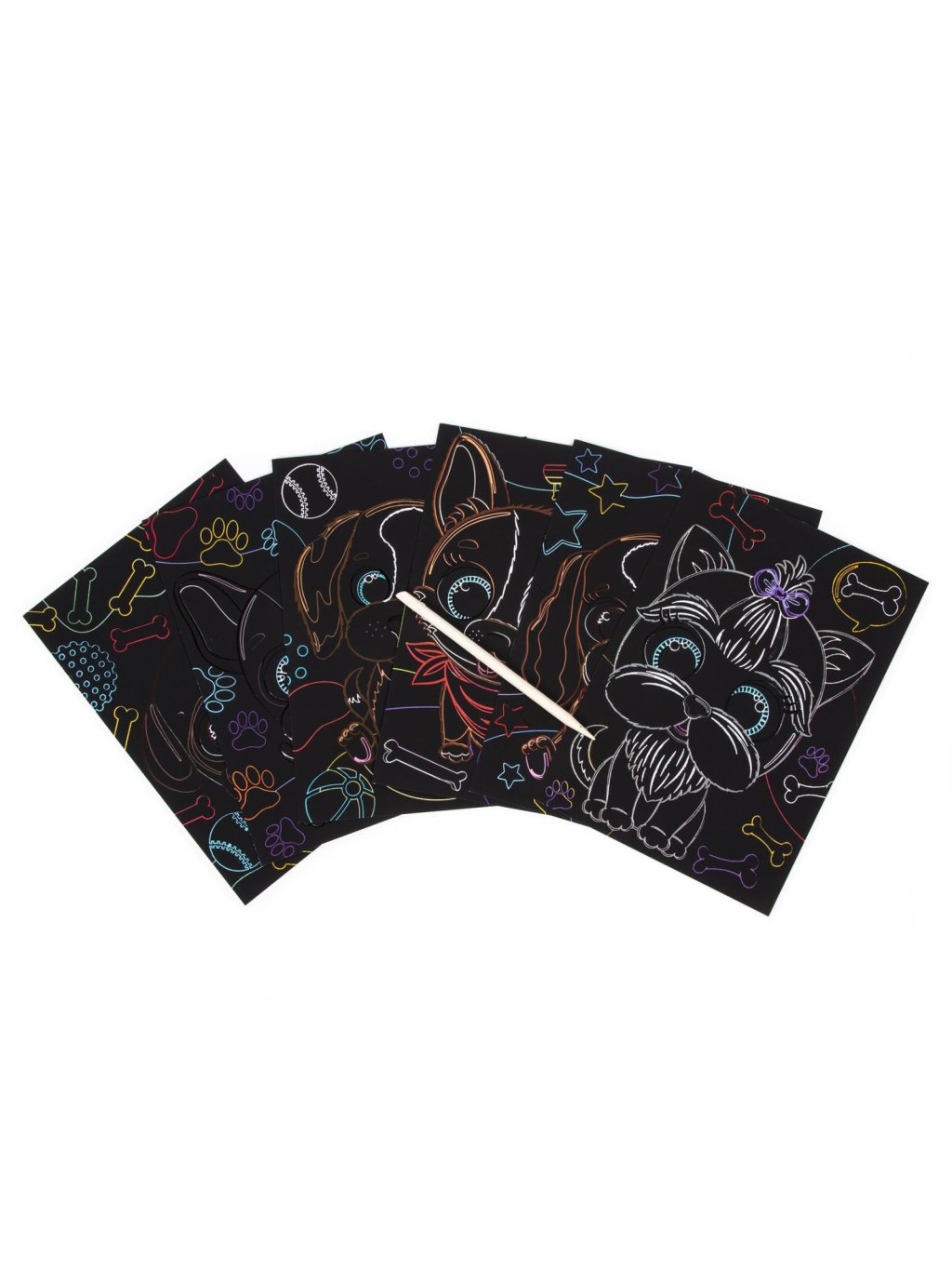 Balení obsahuje 6 ks škrabacích obrázků + bambusový rytec.