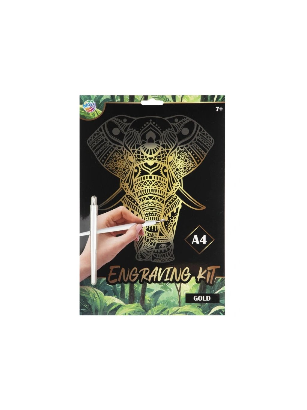 Škrabací obrázek A4 – Engraving Kit, Zlatý slon