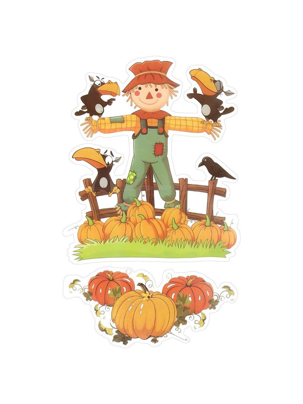 Podzimní fóliové samolepky se strašákem a dýněmi. 2 velké motivy v balení