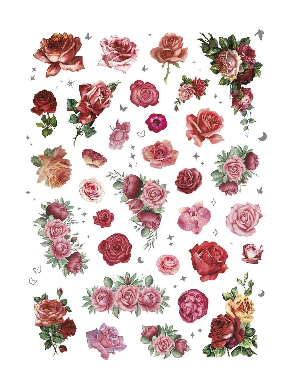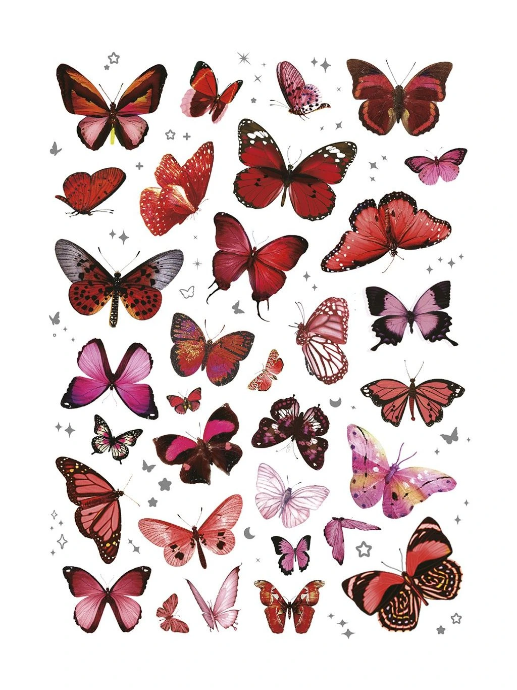 Stylové fóliové samolepky v výrazných červených a růžových odstínech s motivy motýlů a květin dodají vašim projektům energii a originalitu. Díky detailnímu provedení a jemnému lesku působí velmi dekorativně.