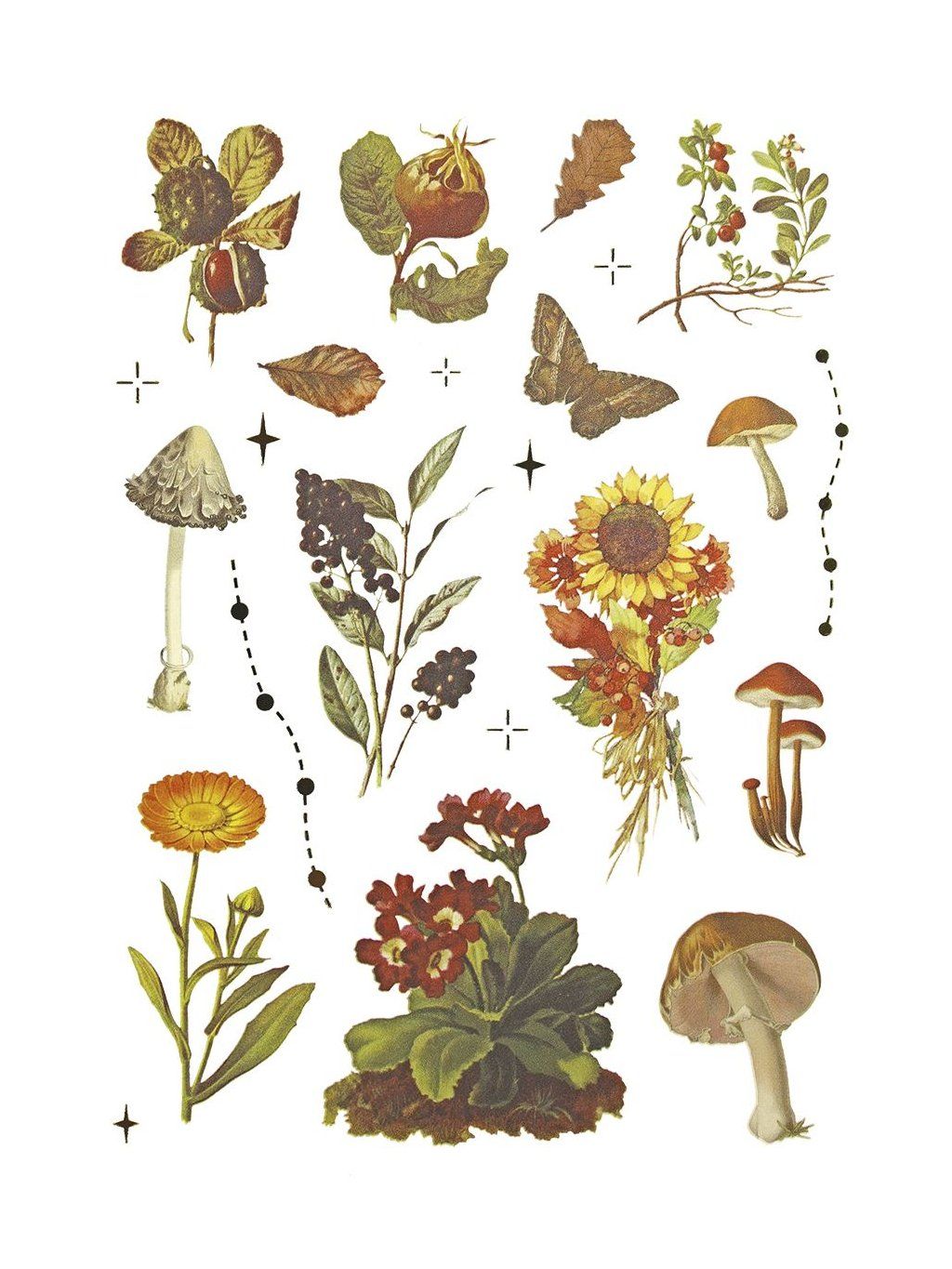 Detailně zpracované fóliové samolepky inspirované podzimní přírodou přinášejí hřejivou atmosféru do každého kreativního projektu. Najdete zde motivy listů, hub, šišek, kaštanů i dalších přírodních prvků.