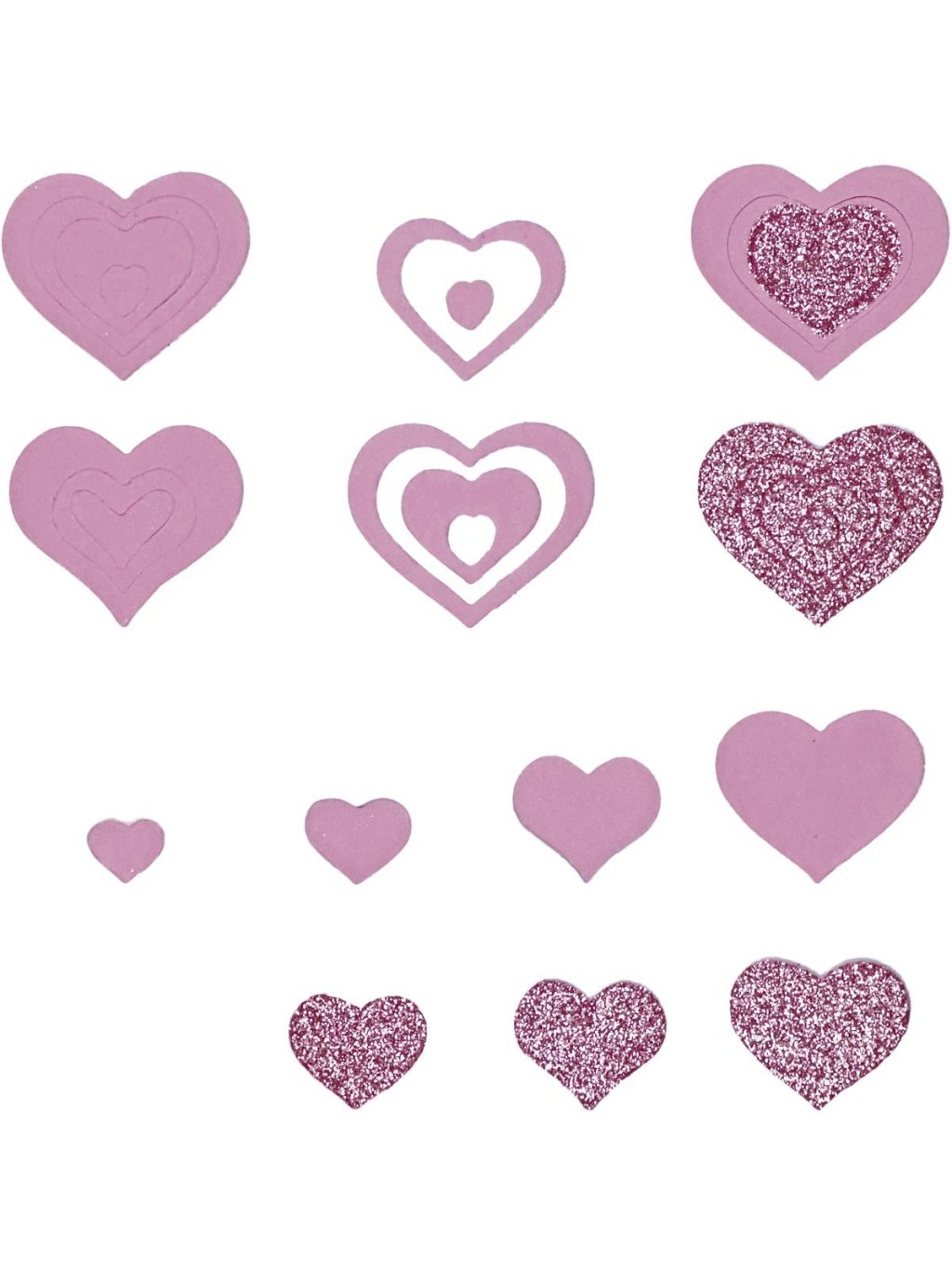 ST438, Samolepky, růžová srdíčka, mix velikostí, rozměr archu 20x13cm