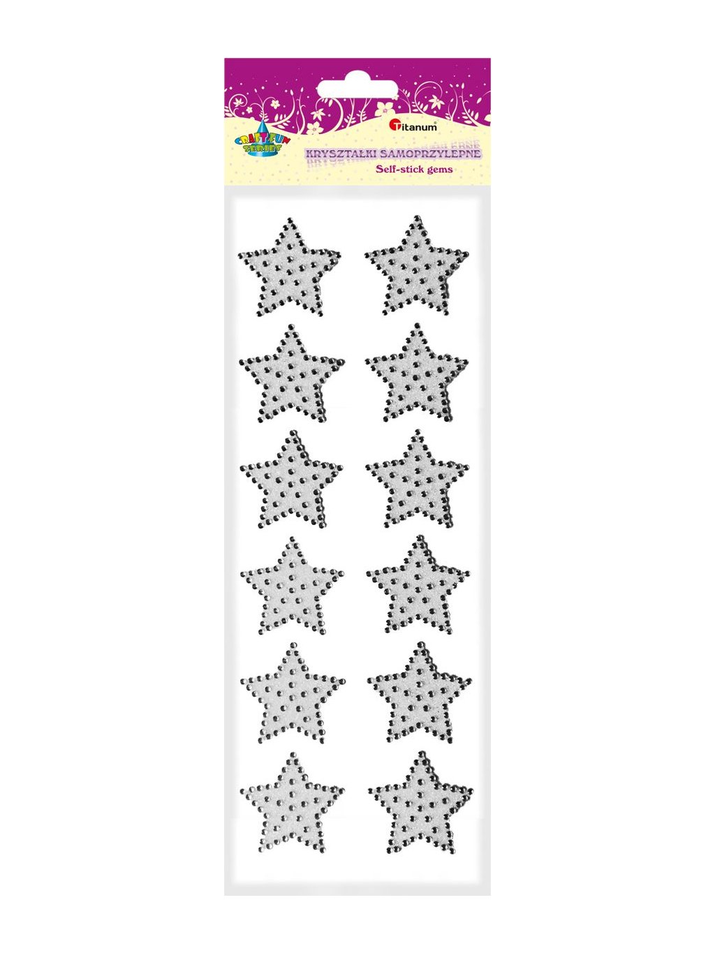 ST450, Samolepky, třpytivé, HVĚZDIČKY, bílé, 4 cm, 12ks/bal.