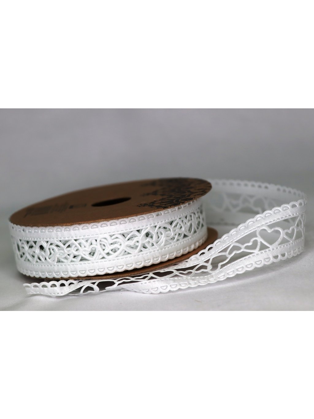 Stuha ražená pevná - srdce, bílá, 2,5 cm, délka cca 9,10m/bal.
