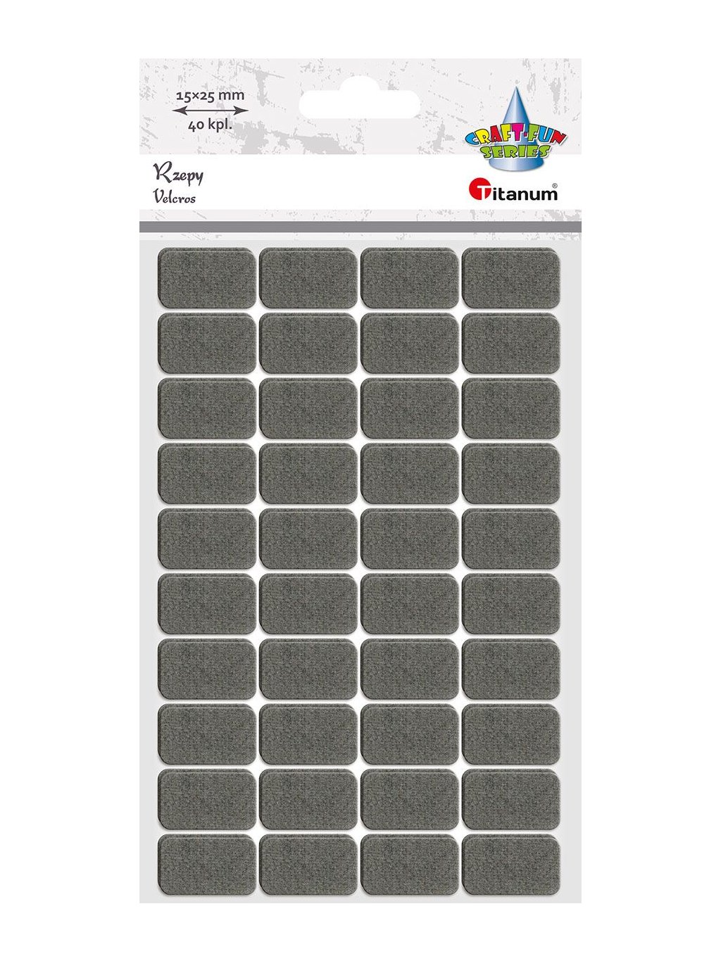 Suchý zip, obdélníky, ŠEDÉ, 1,5x2,5 cm, 40ks/bal.