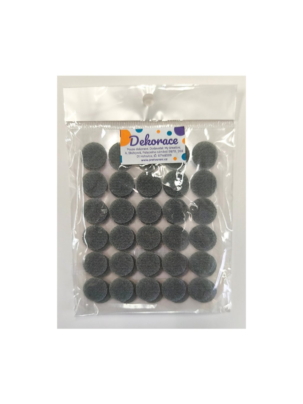 Suchý zip. samolep. kolečka, ŠEDÁ, 15mm, Arch 11,3 x 8,6 cm, 30 párů/bal.