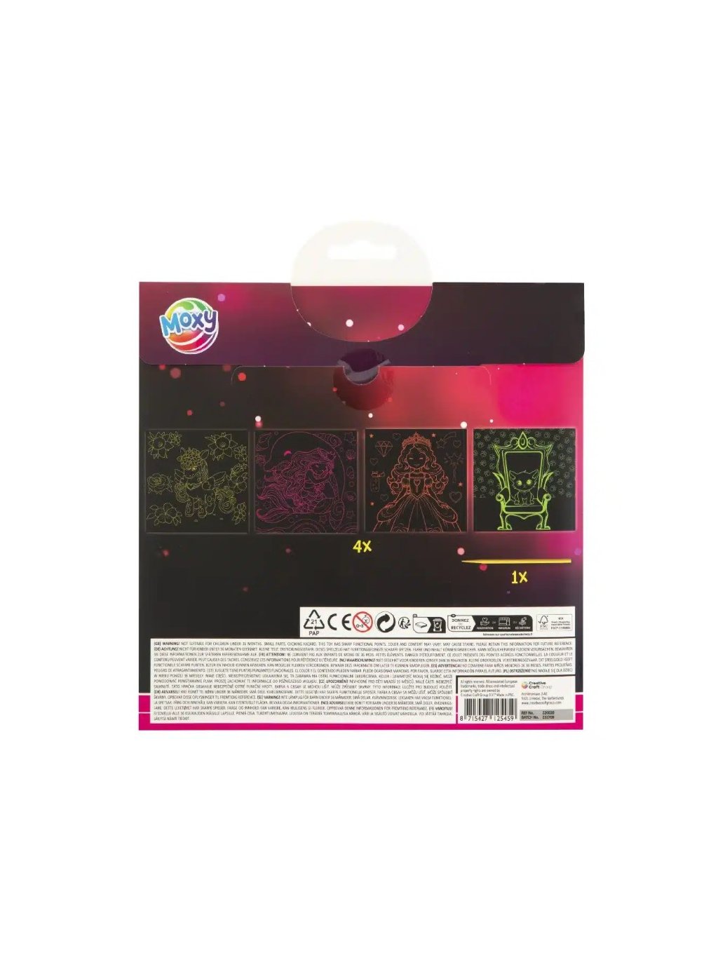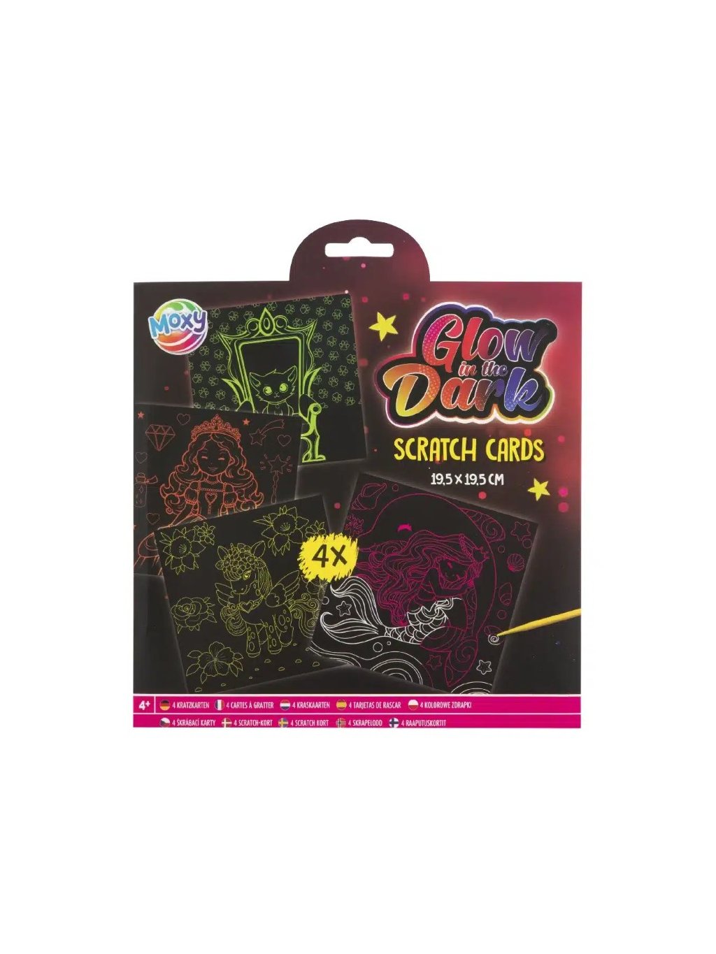Škrabací obrázky Glow in the Dark o velikosti 19,5 × 19,5 cm. Sada obsahuje 4 motivy a škrabací pero. Obrázky po nasvícení svítí ve tmě.
