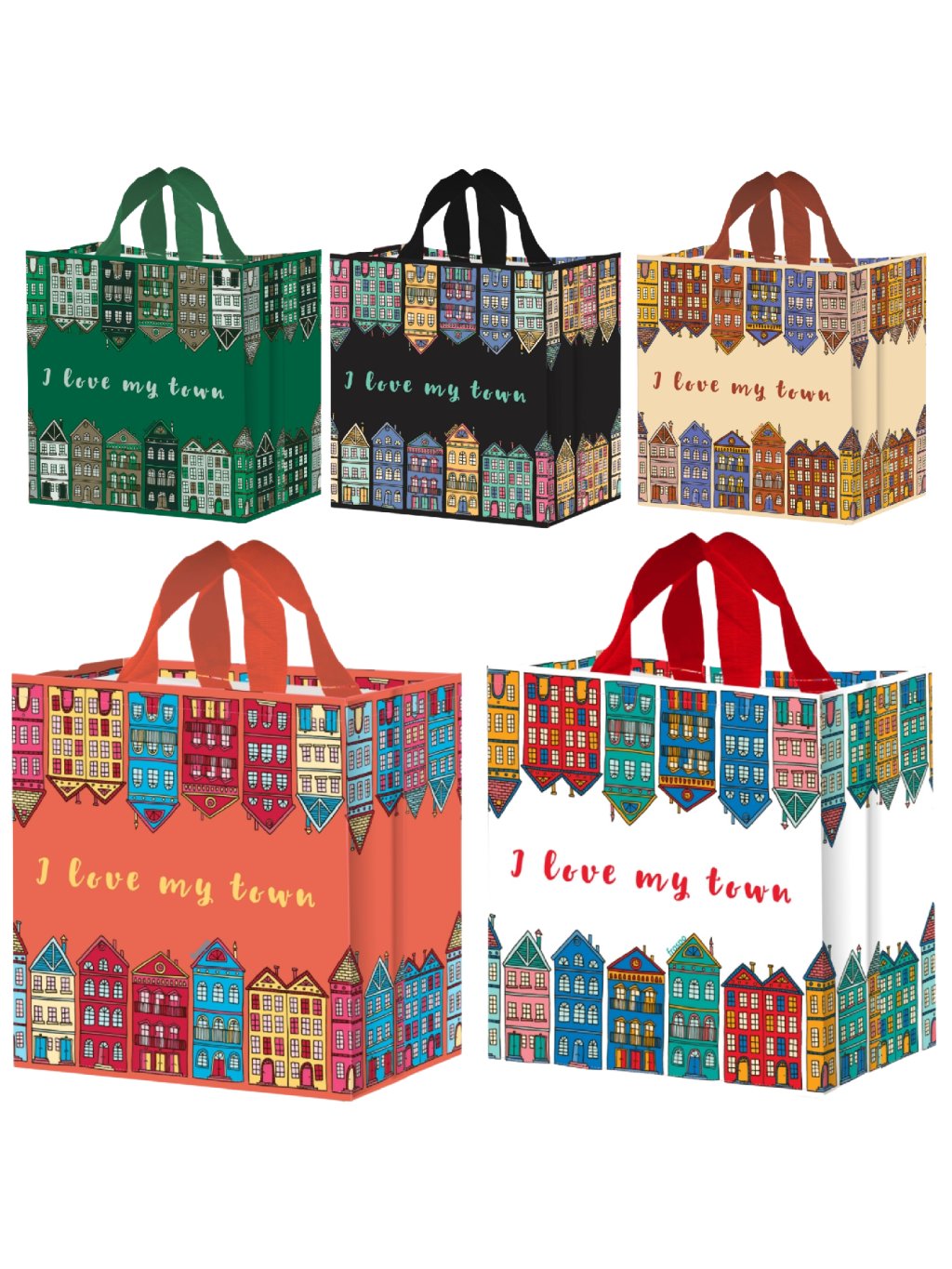 Taška PP, nákupní, pevná, 35x35x20cm/24L., DOMEČKY, 1ks