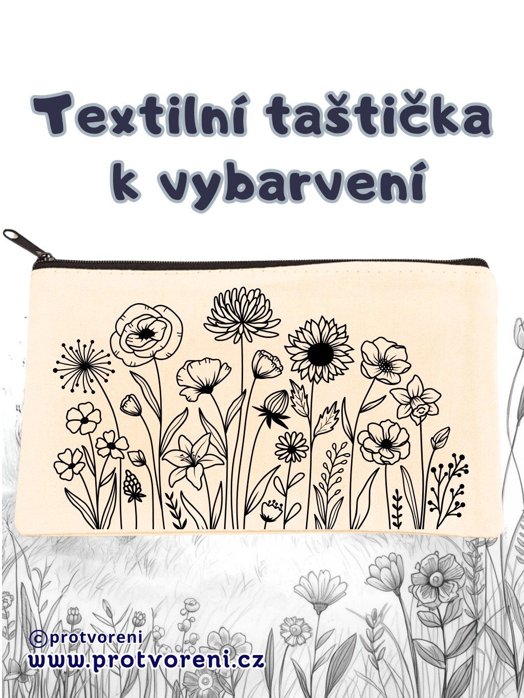 Taštička k vybarvení, LUČNÍ KVÍTÍ, smetanová, 12,2x20,3cm, 1 kus