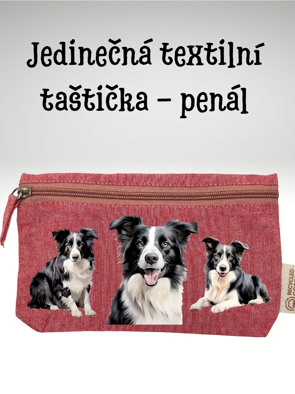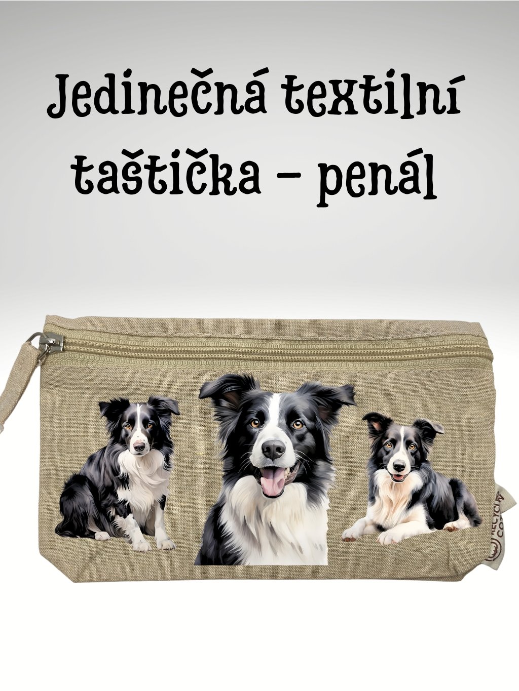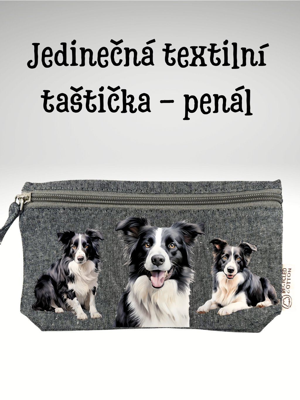 Taštička/penál s potiskem, BORDER KOLIE - ČERNÁ, 21x12cm, 1 kus