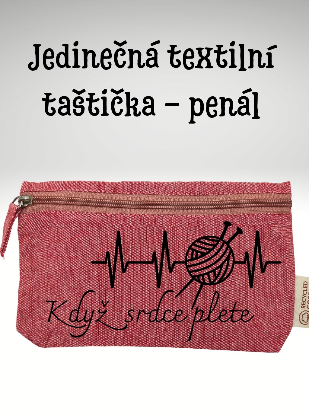 Taštička/penál s potiskem, Když srdce plete, 21x12cm, 1 kus