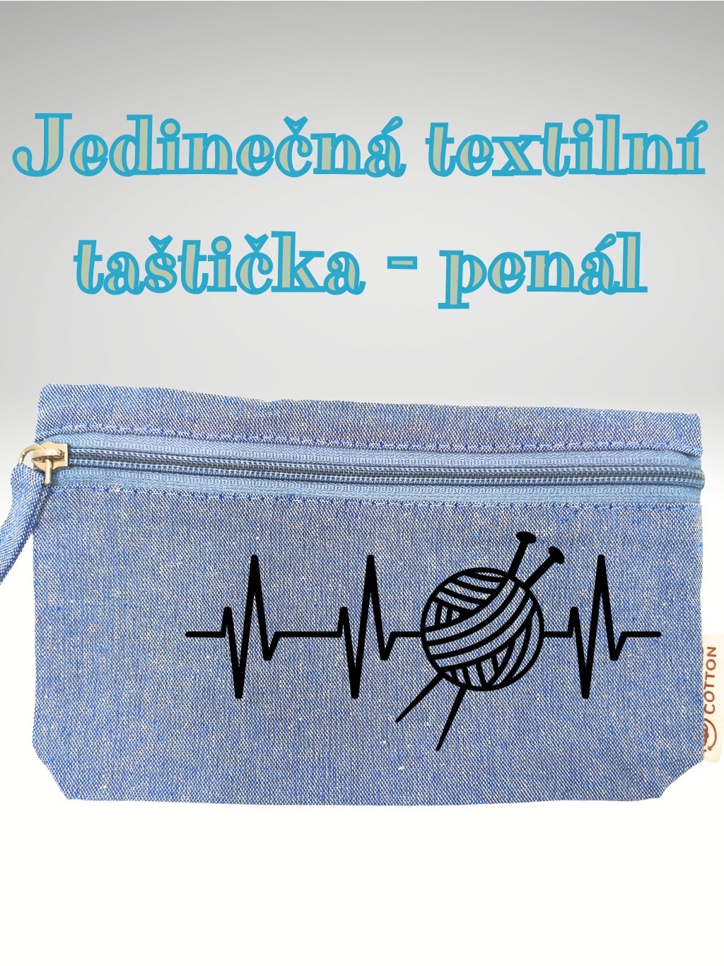 Taštička/penál z recyklované bavlny se zipem a taháčkem .
