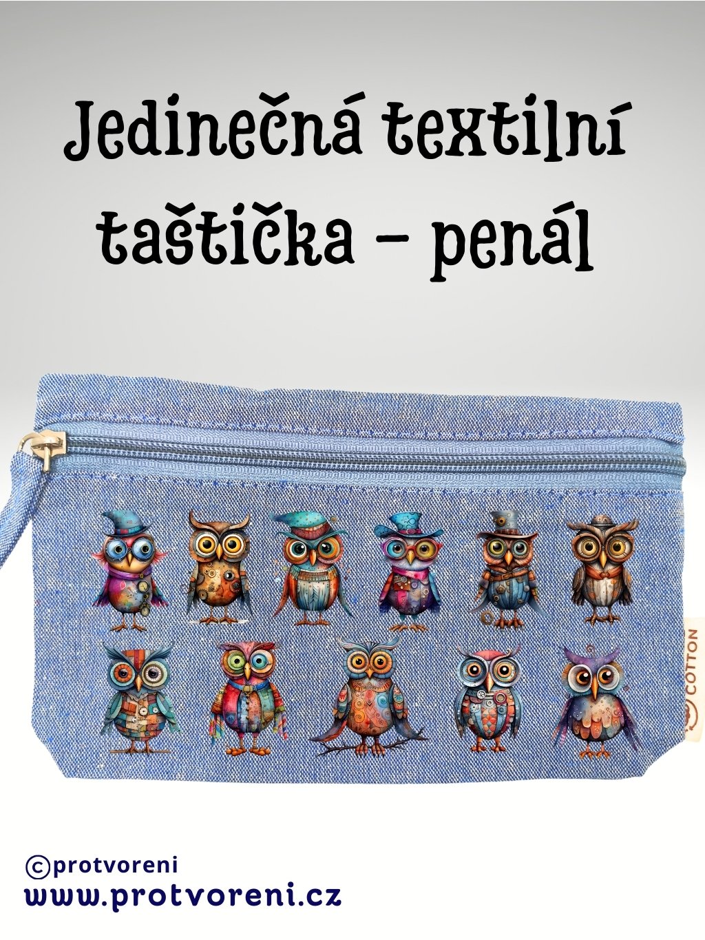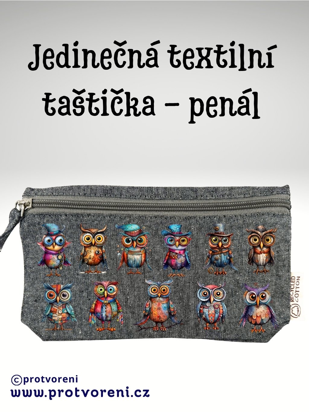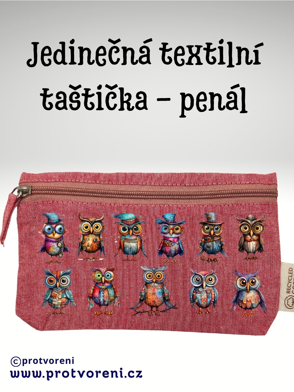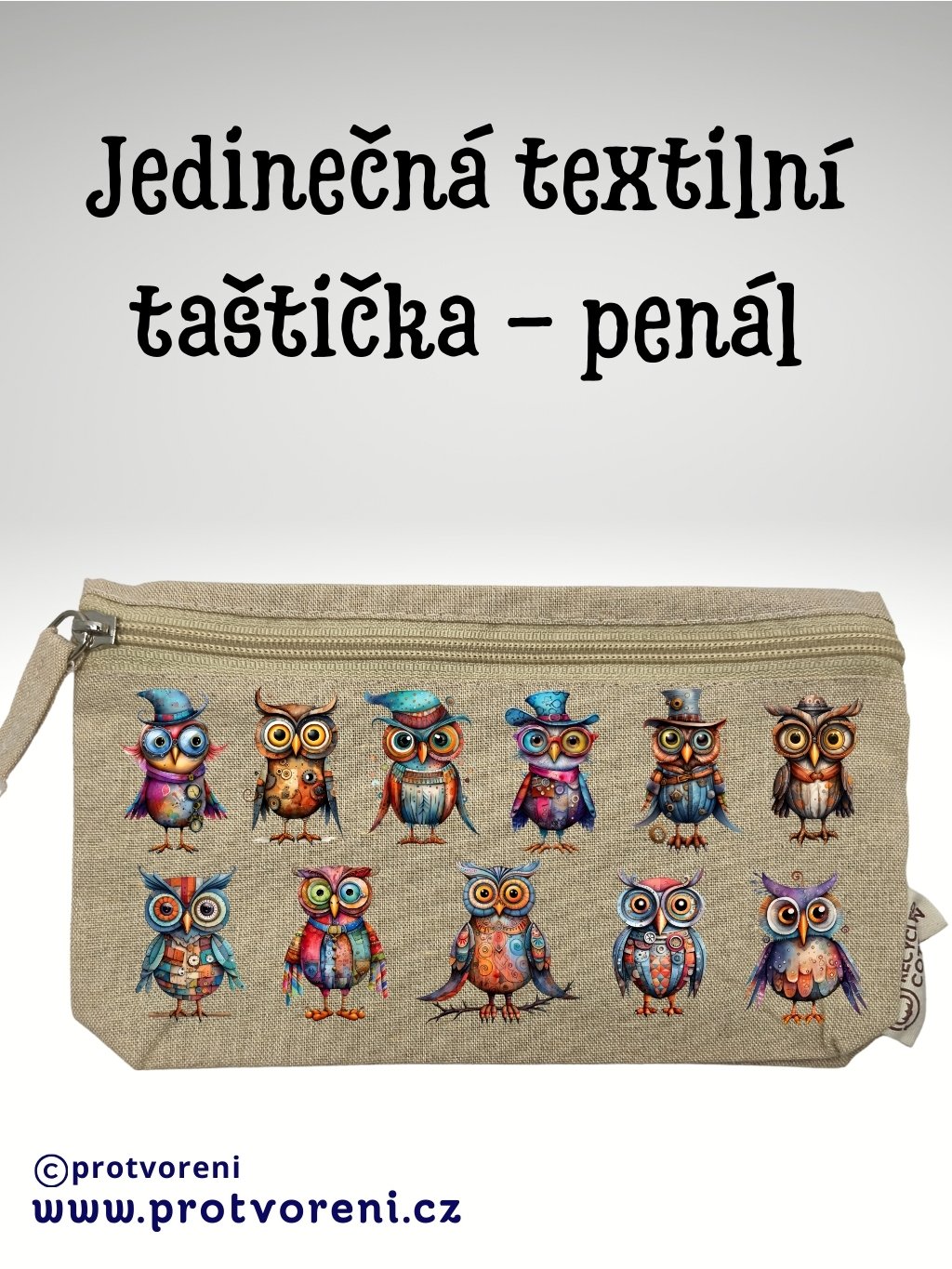 Taštička/penál s potiskem, SOVY, 21x12cm, 1 kus