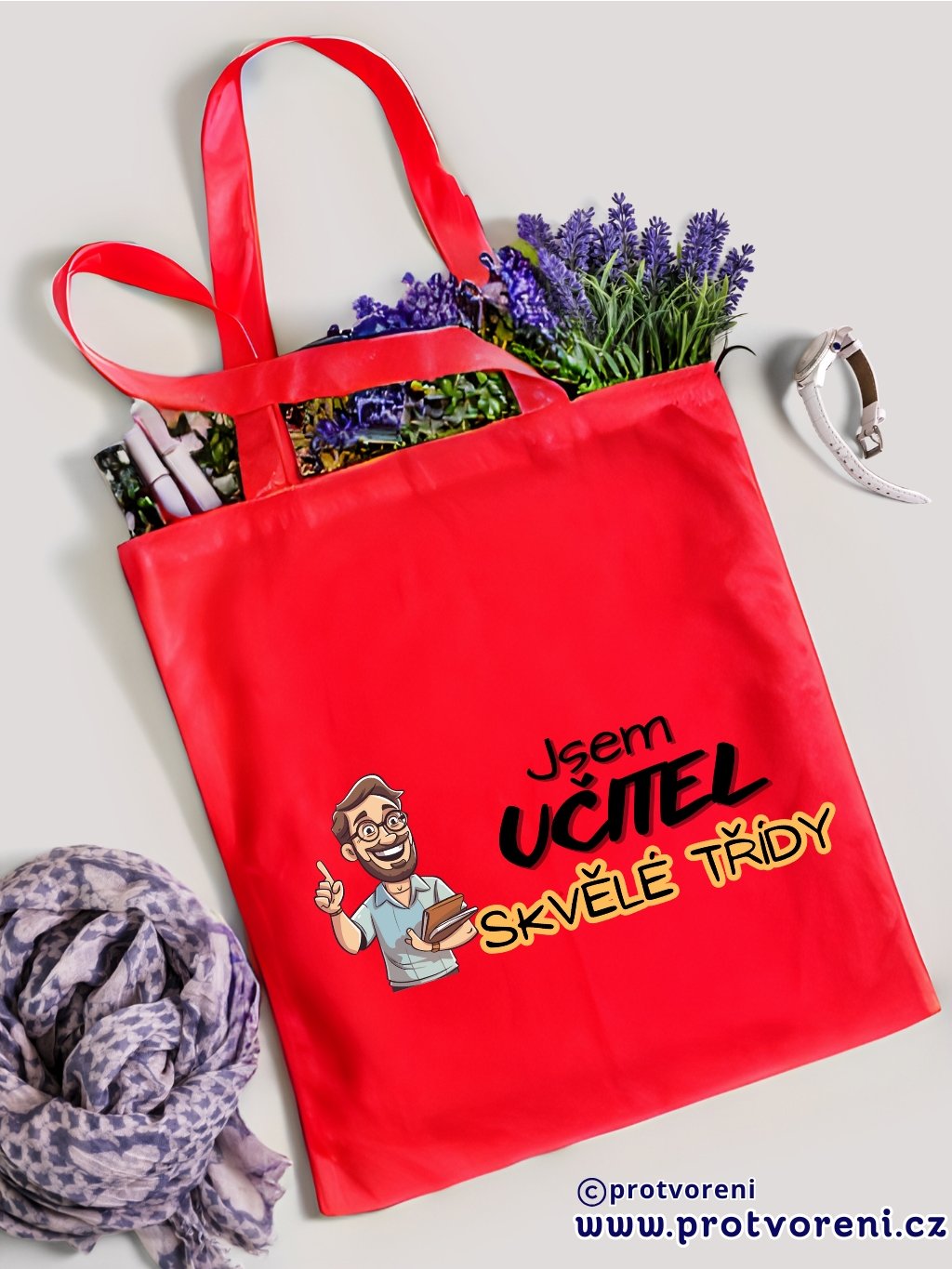 Textilní taška, Jsem učitel skvělé třídy, 41x37cm, mix barev, 1 kus