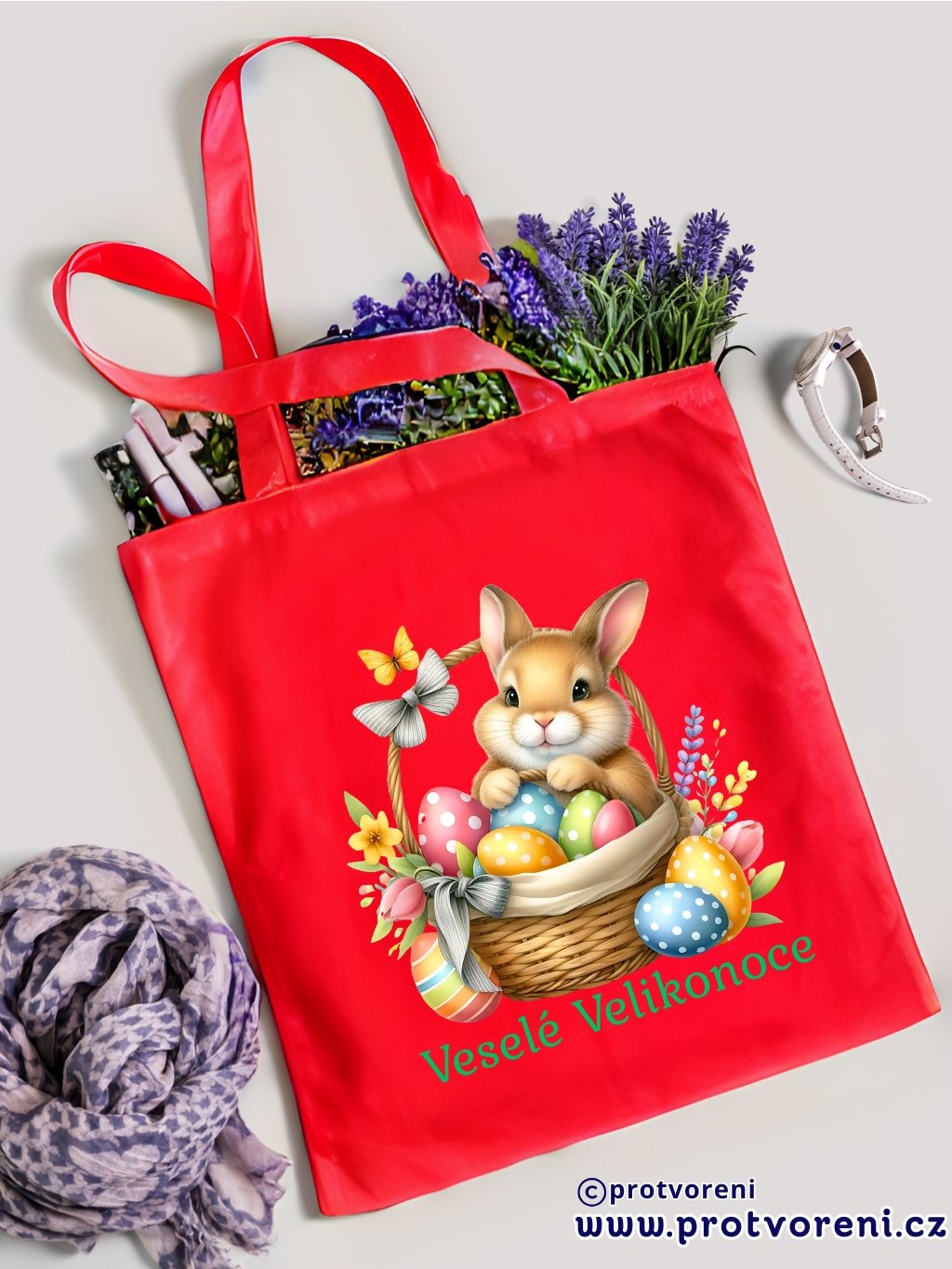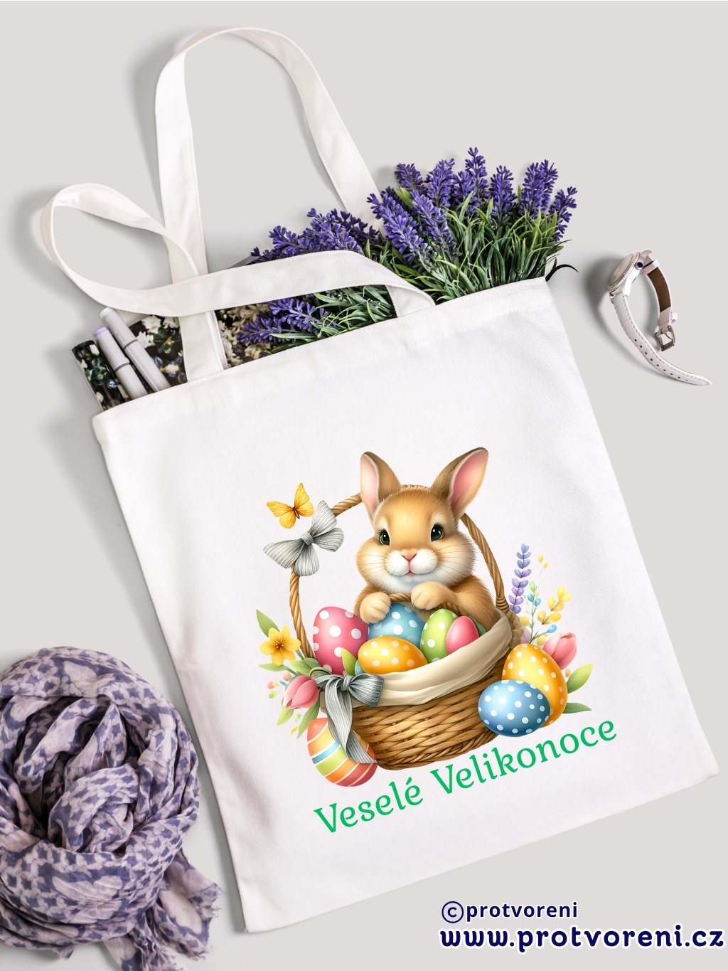 Textilní taška, KRÁLÍČEK - VESELÉ VELIKONOCE, 41x37cm, mix barev, 1 ks