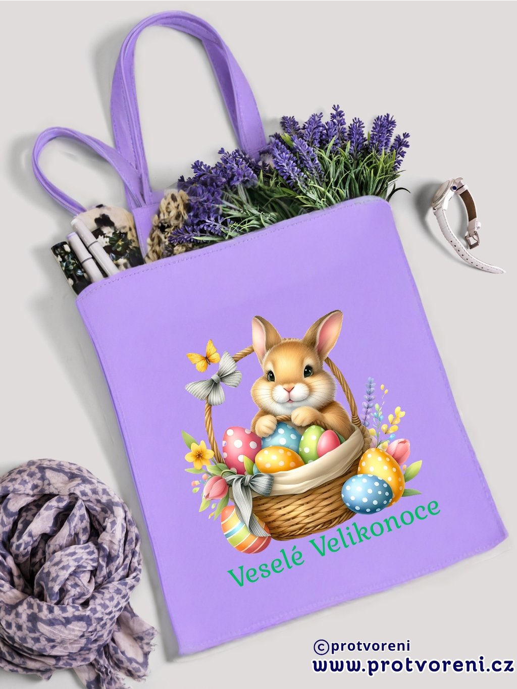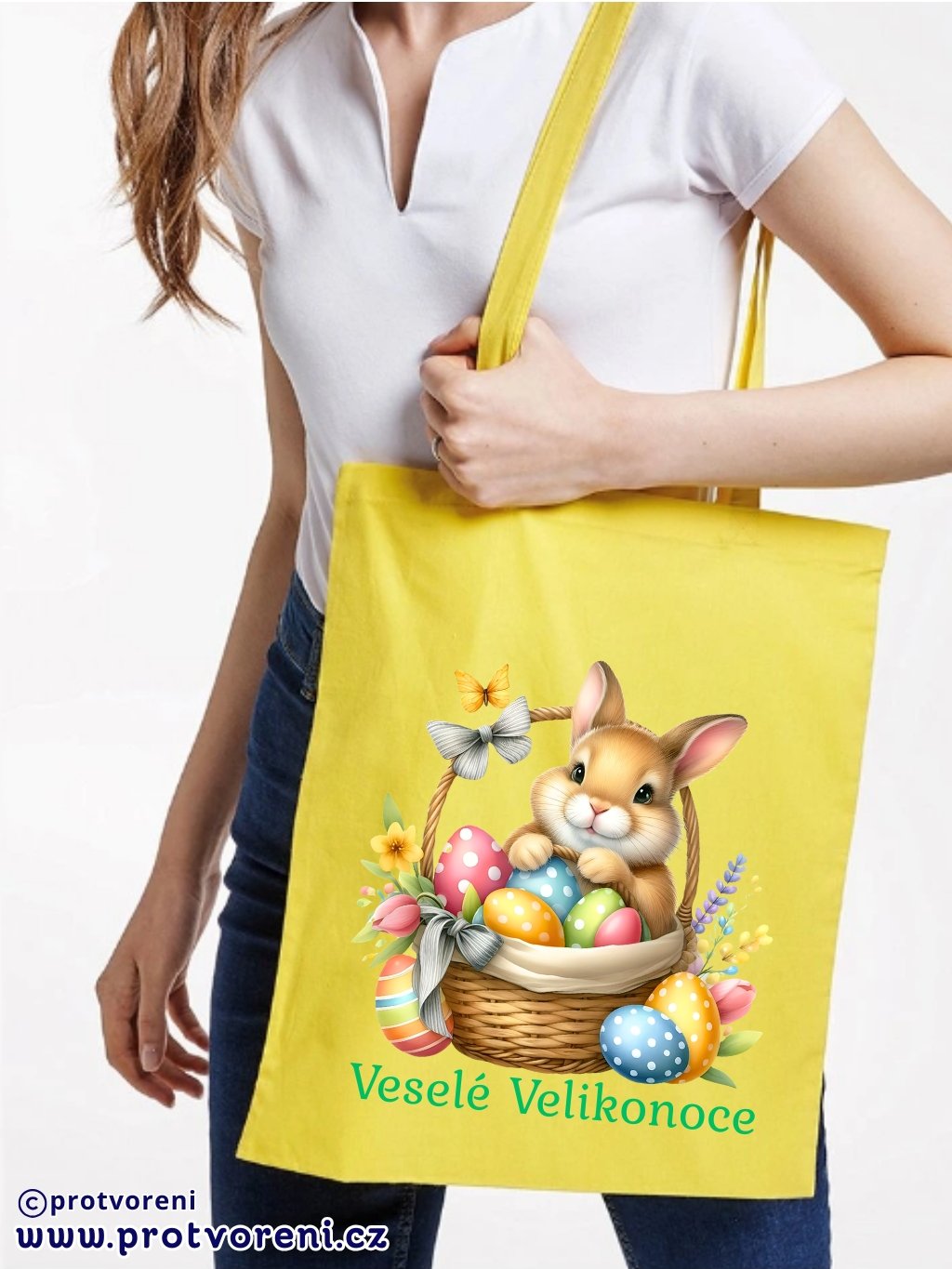 Textilní taška, KRÁLÍČEK - VESELÉ VELIKONOCE, 41x37cm, mix barev, 1 ks