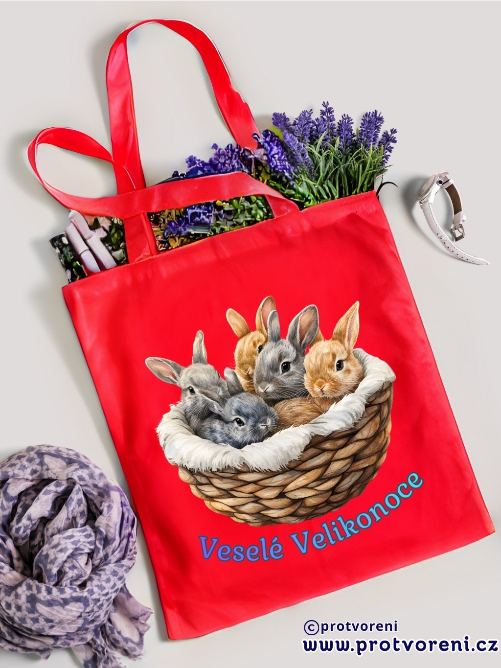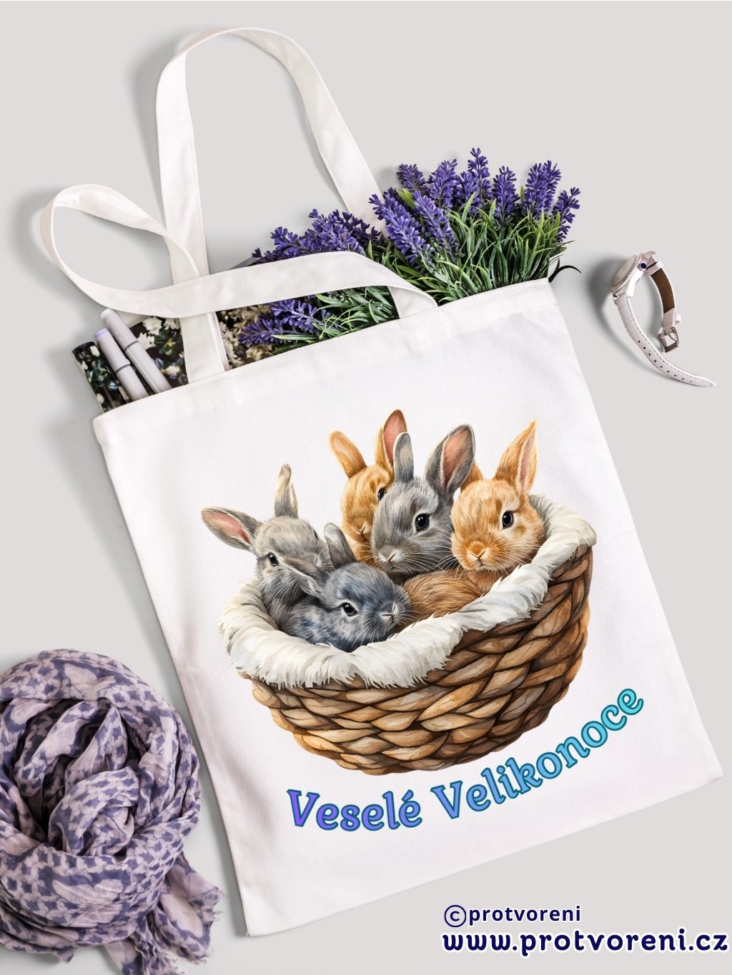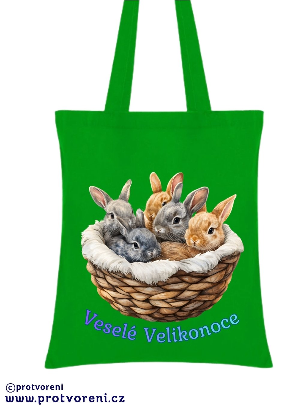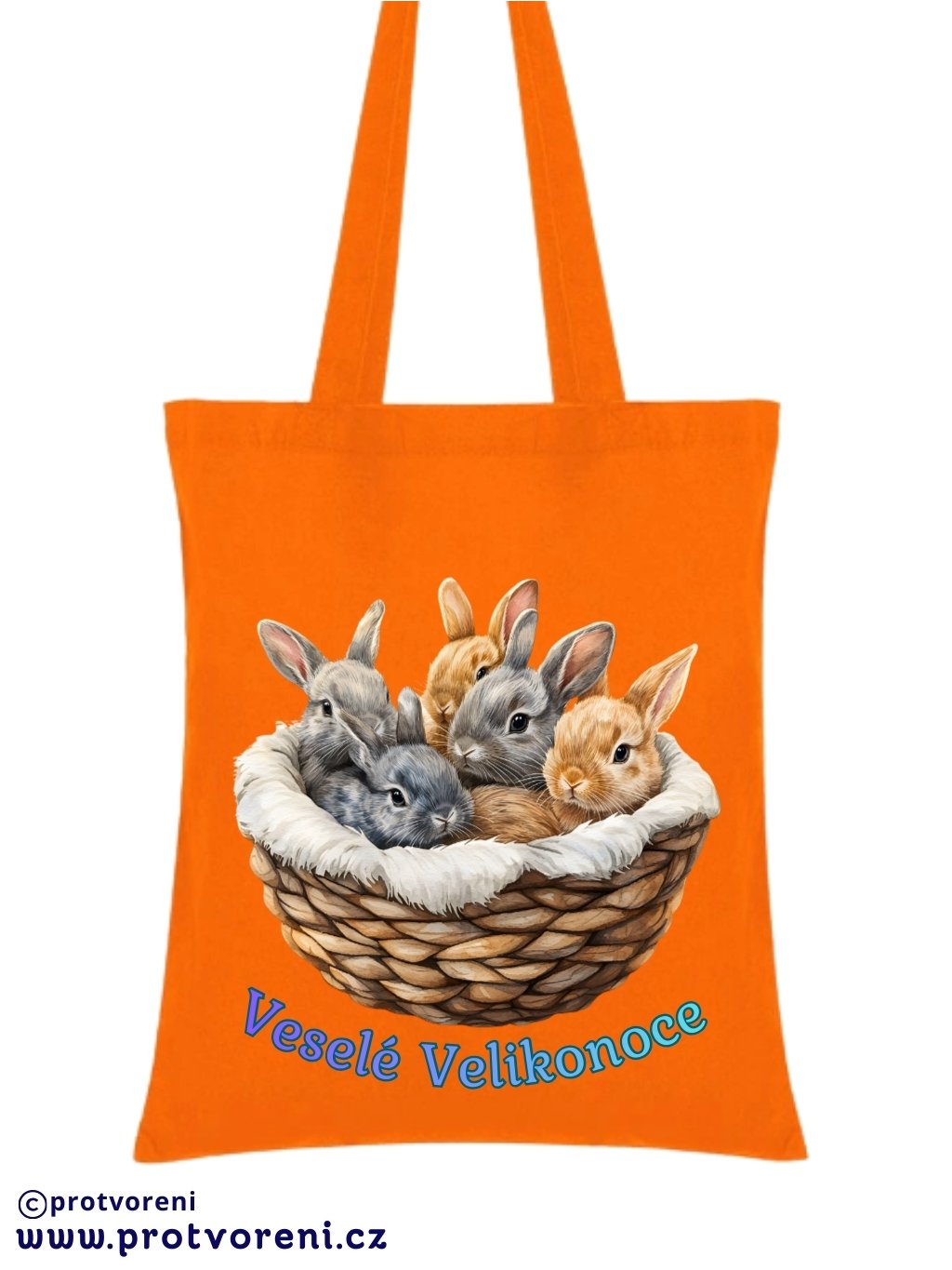 Textilní taška, KRÁLÍCI V KOŠÍKU, 41x37cm, mix barev, 1 ks