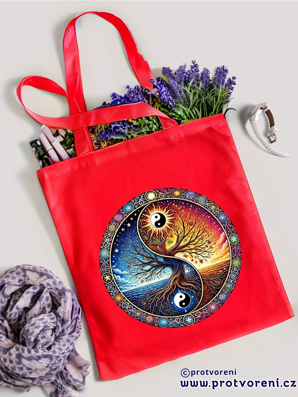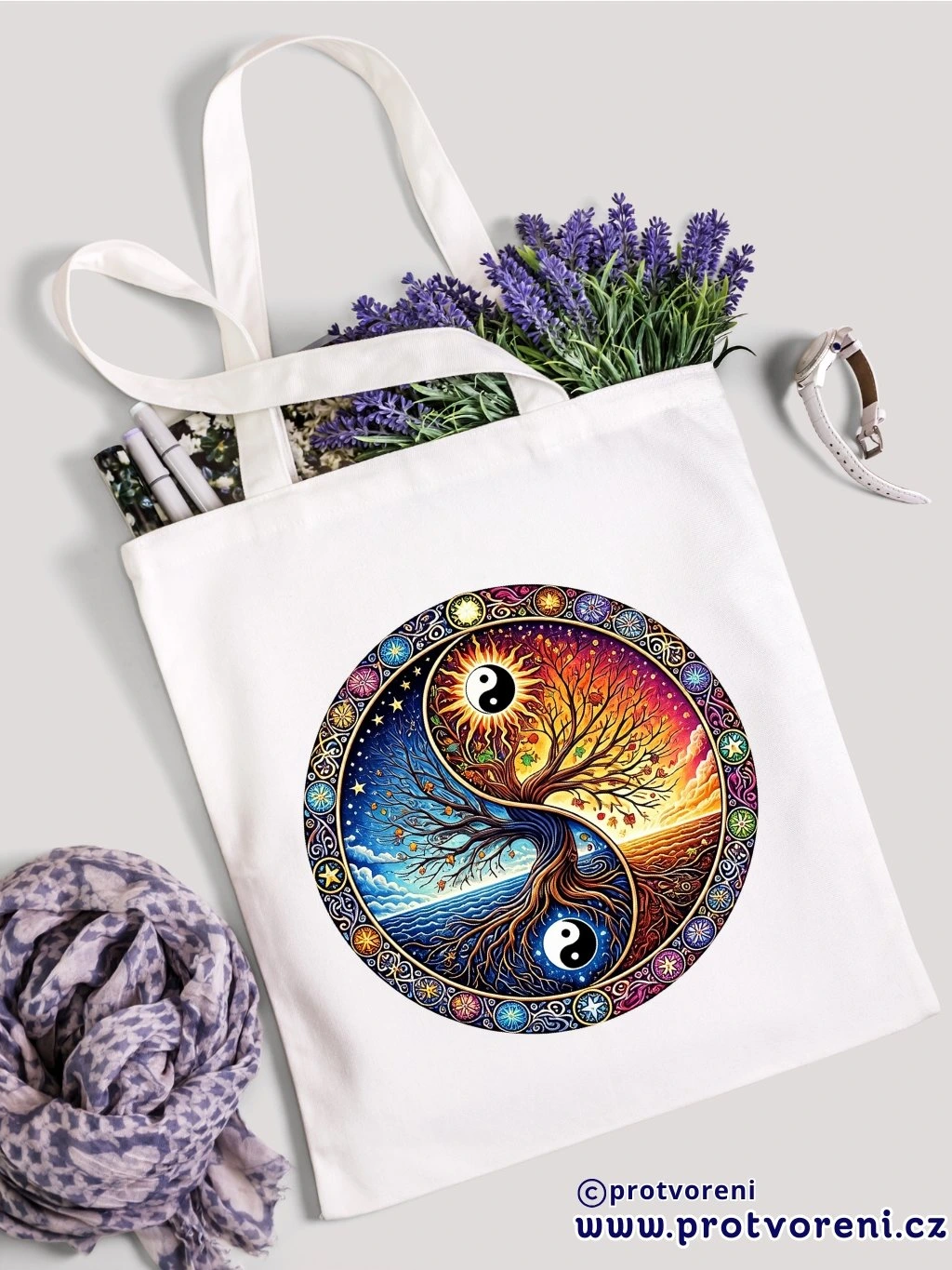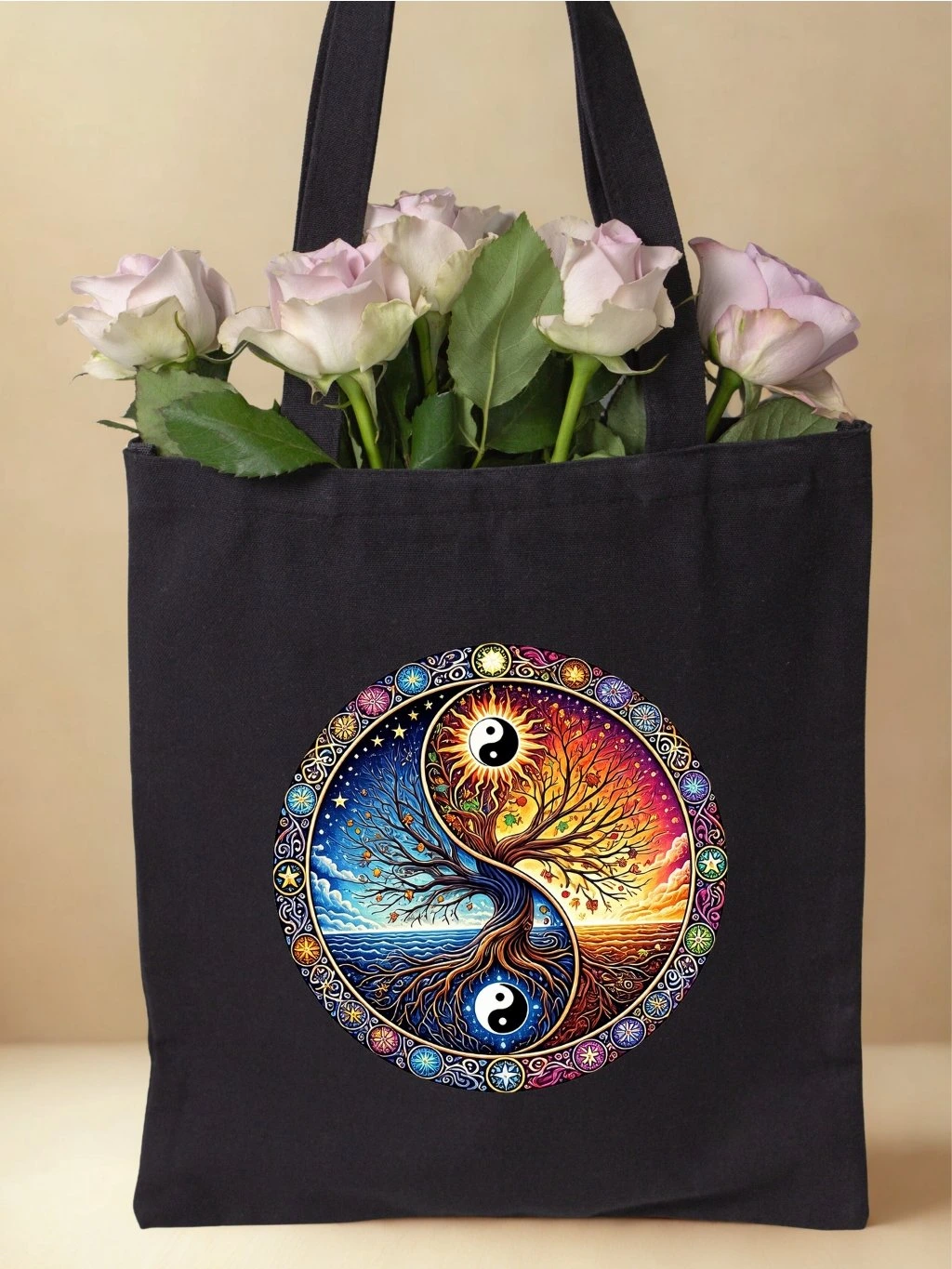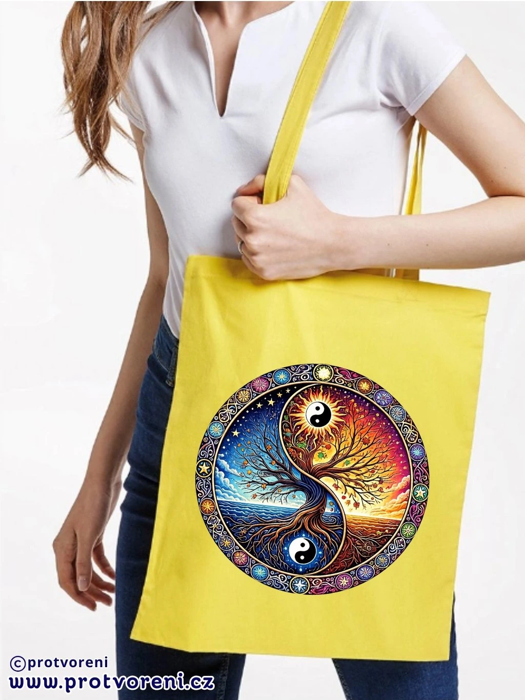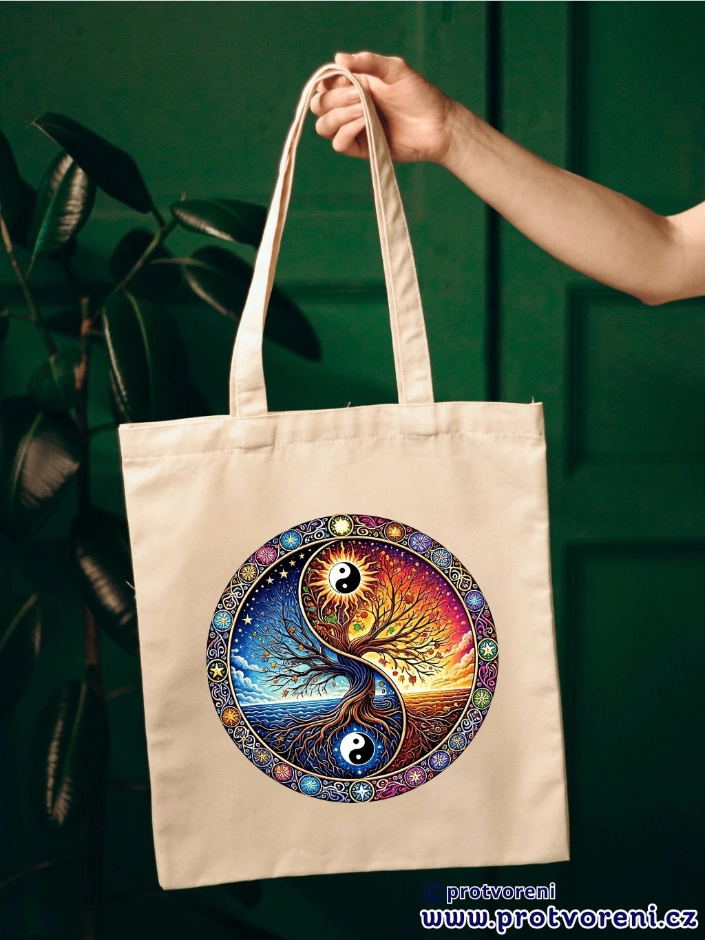 Textilní taška, MANDALA STROM - YIN YANG, 41x37cm, mix barev, 1 ks