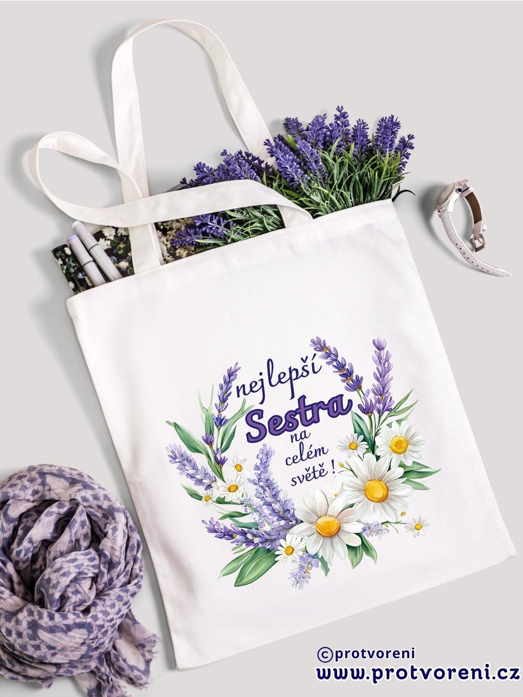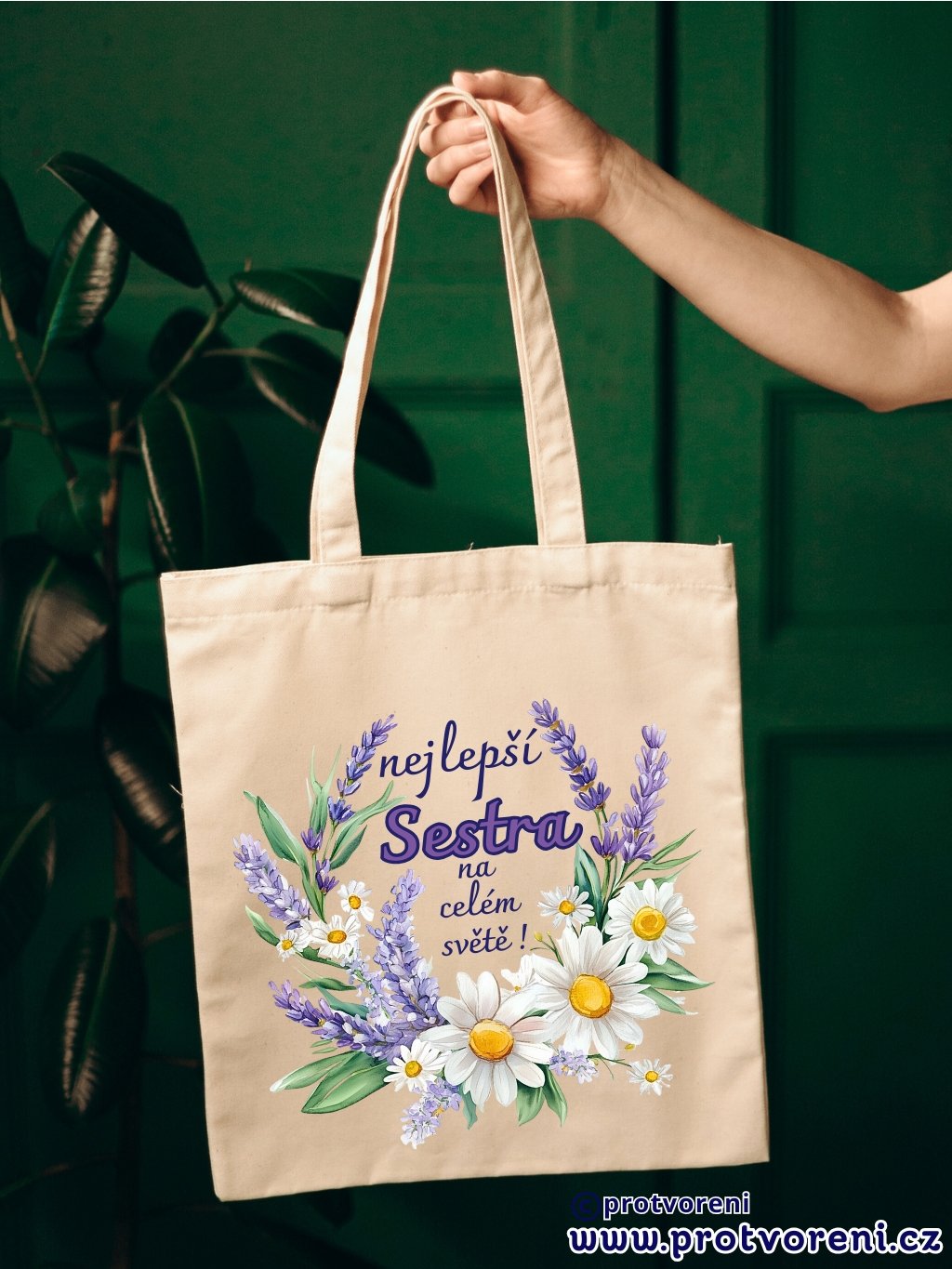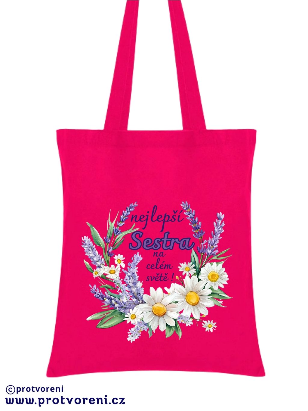 Textilní taška, nejlepší sestra na celém světě, 41x37cm, mix barev, 1 ks