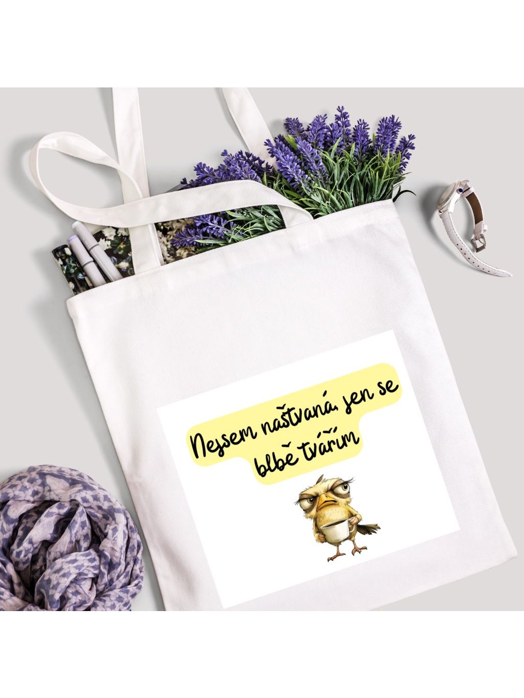 Textilní taška, Nejsem naštvaná jen se blbě tvářím, 41x37cm, mix barev, 1 kus