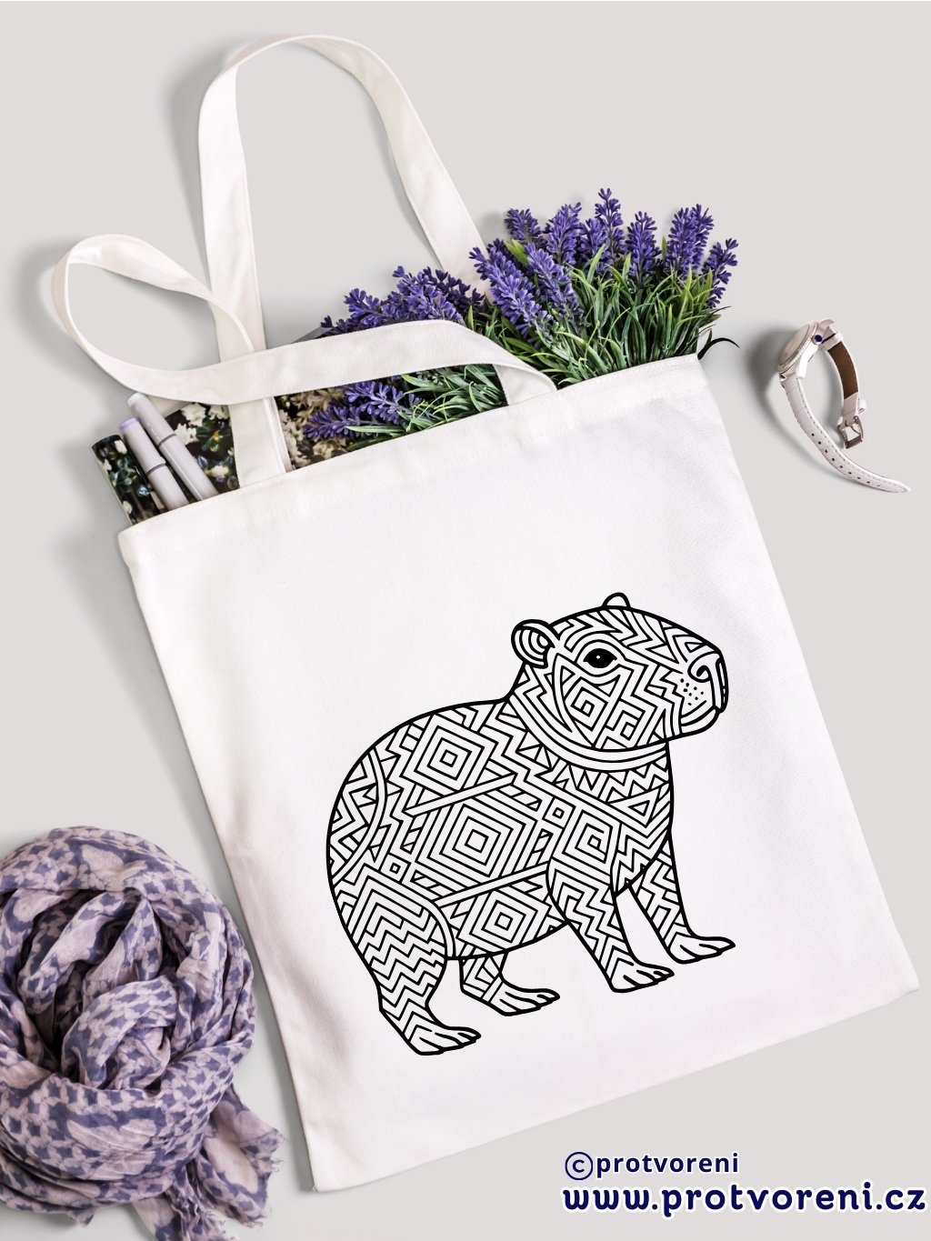 Textilní taška k vybarvení, KAPYBARA, 41x37cm, BÍLÁ, 1 kus