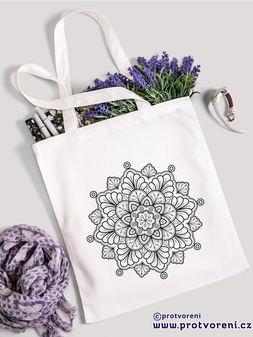 Textilní taška k vybarvení, MANDALA 1, 41x37cm, BÍLÁ, 1 kus