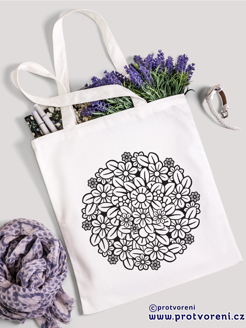 Vybarvování působí uklidňujícím dojmem, pomáhá odbourat stres a podporuje soustředění – ideální pro chvíle klidu i tvoření. Po dokončení získáš nejen umělecké dílo, ale i stylovou a ekologickou tašku na nákupy, do města nebo na výlety.