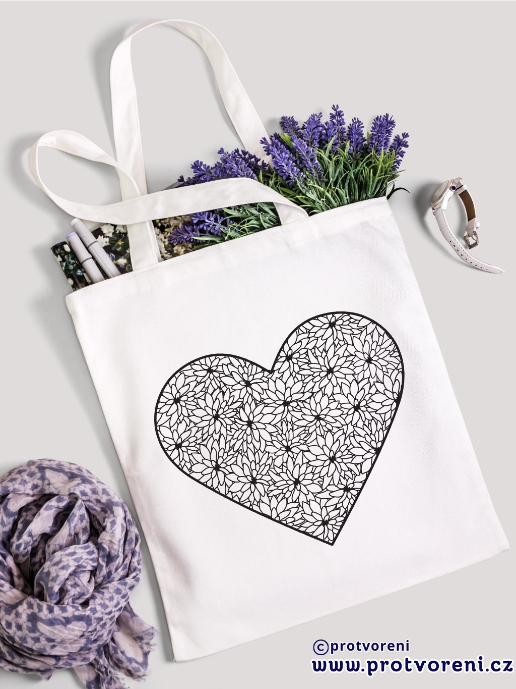 Textilní taška k vybarvení, SRDCE 2, 41x37cm, BÍLÁ, 1 kus