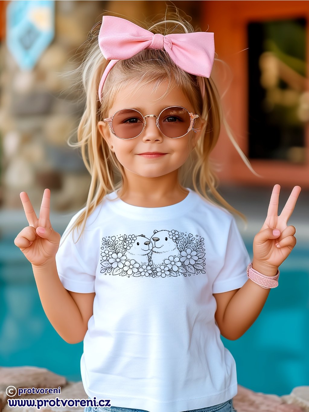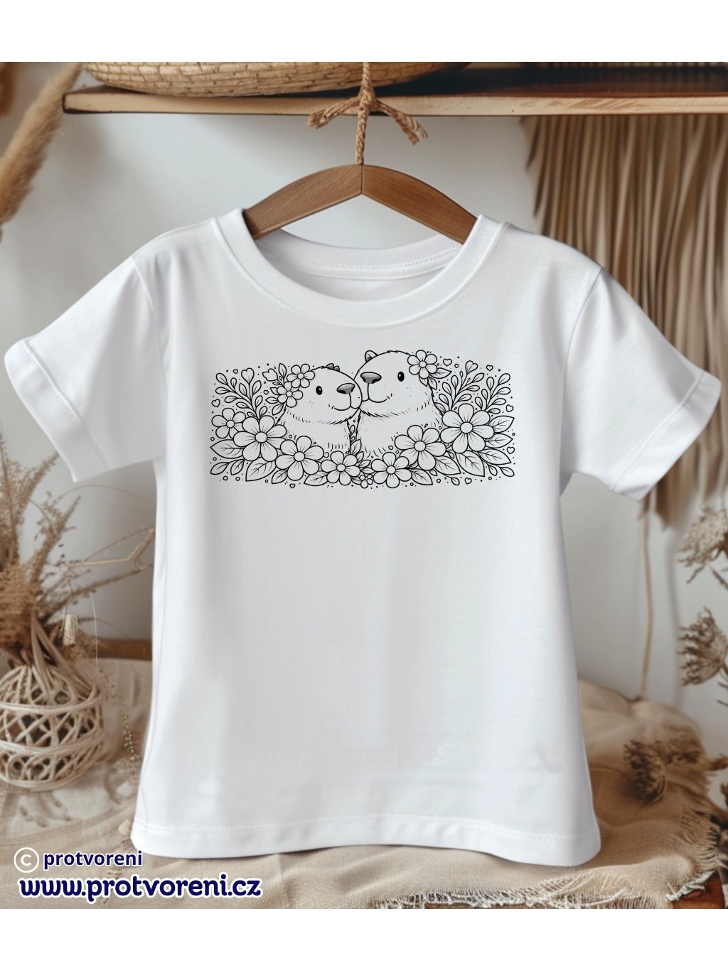 Tričko k vybarvení, dětské, KAPYBARY V KVĚTINÁCH, 1 ks