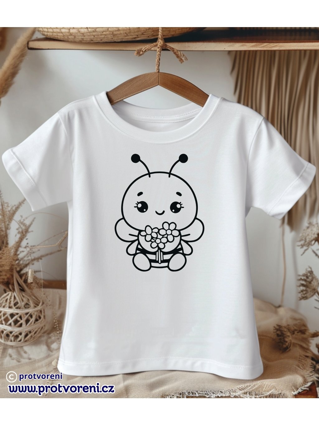 Tričko k vybarvení, dětské, VČELA s kytičkou, 1 ks