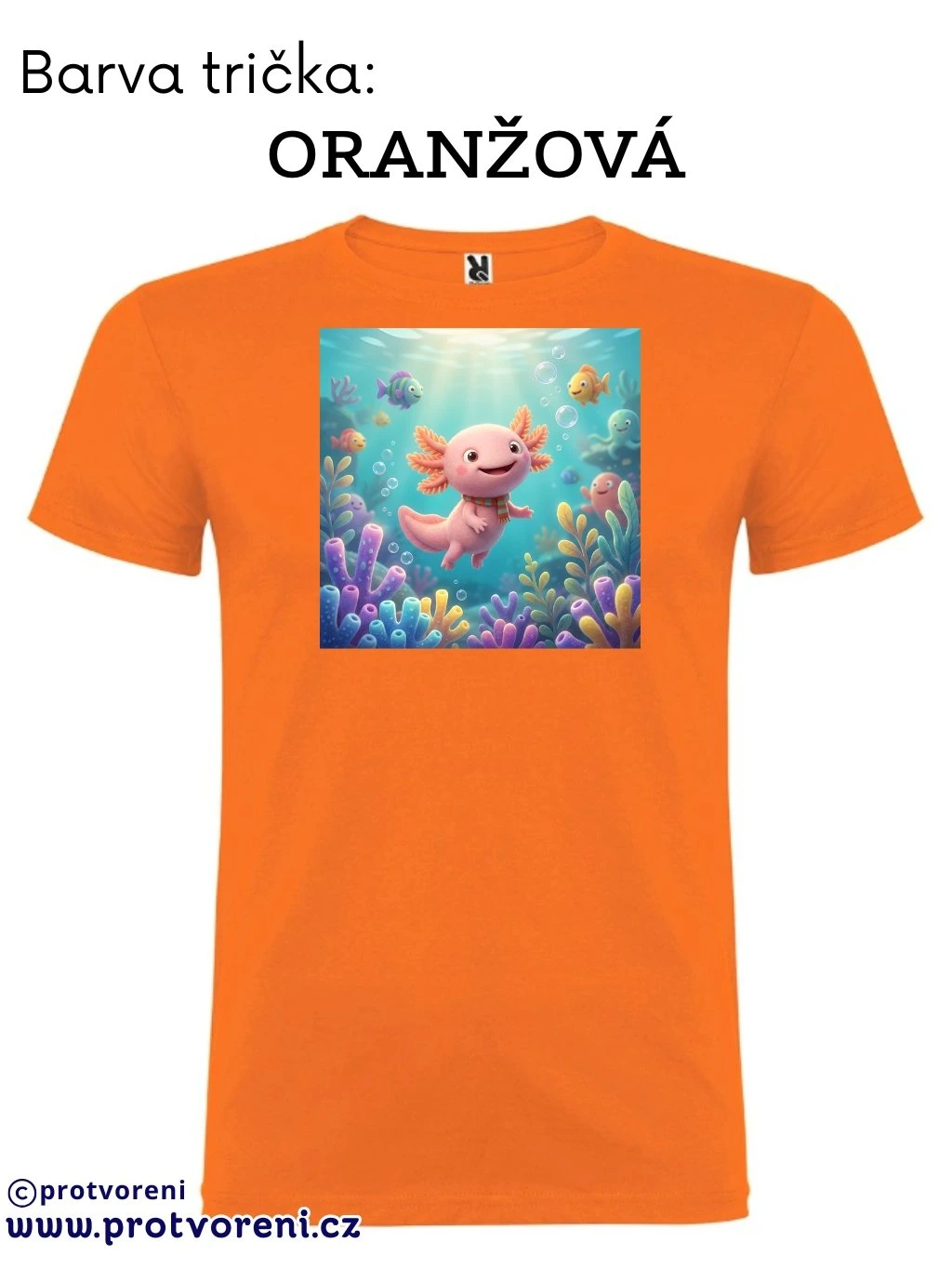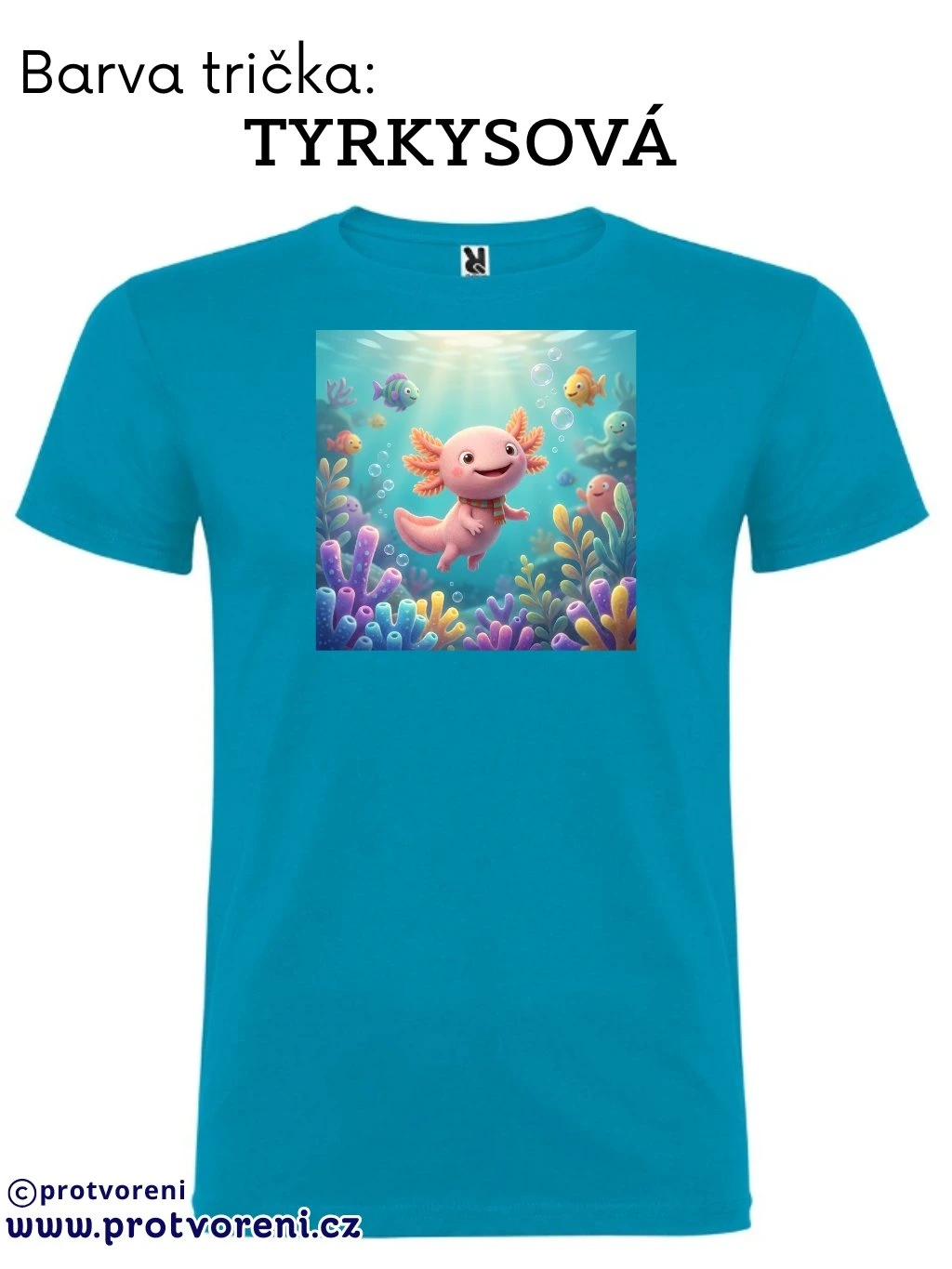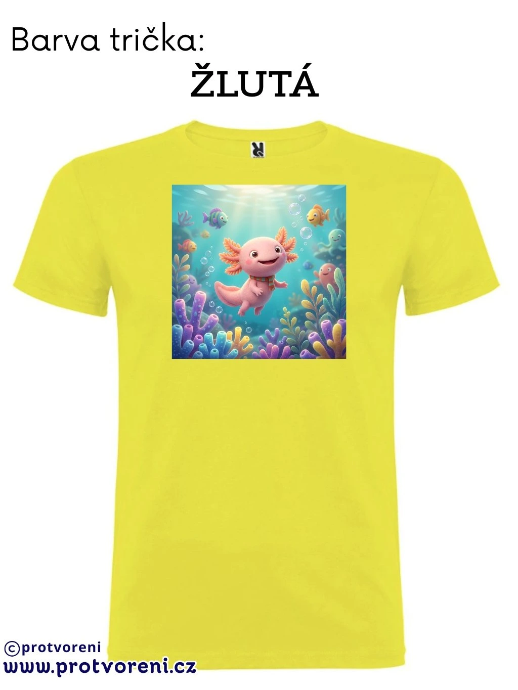 Tričko s potiskem, dětské, AXOLOTL - VODNÍ DRÁČEK, 1 ks