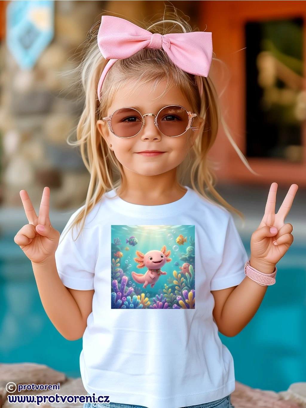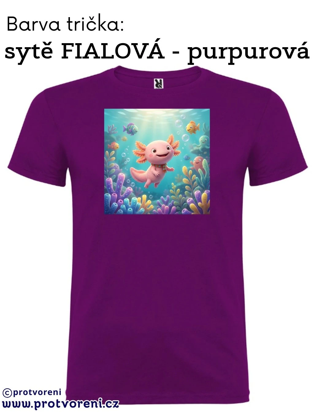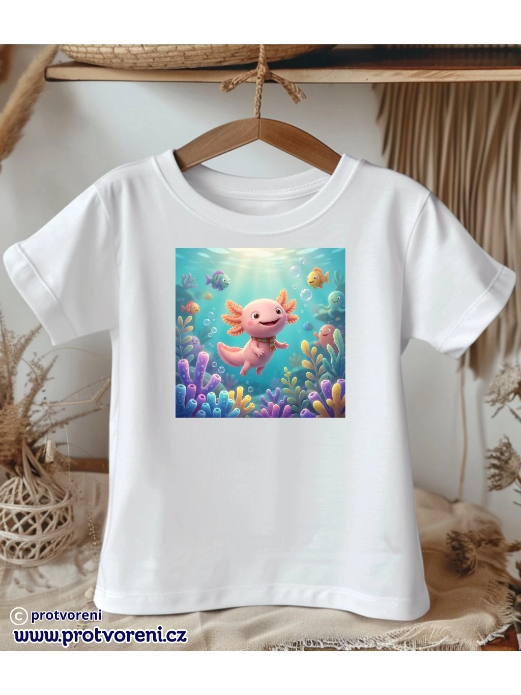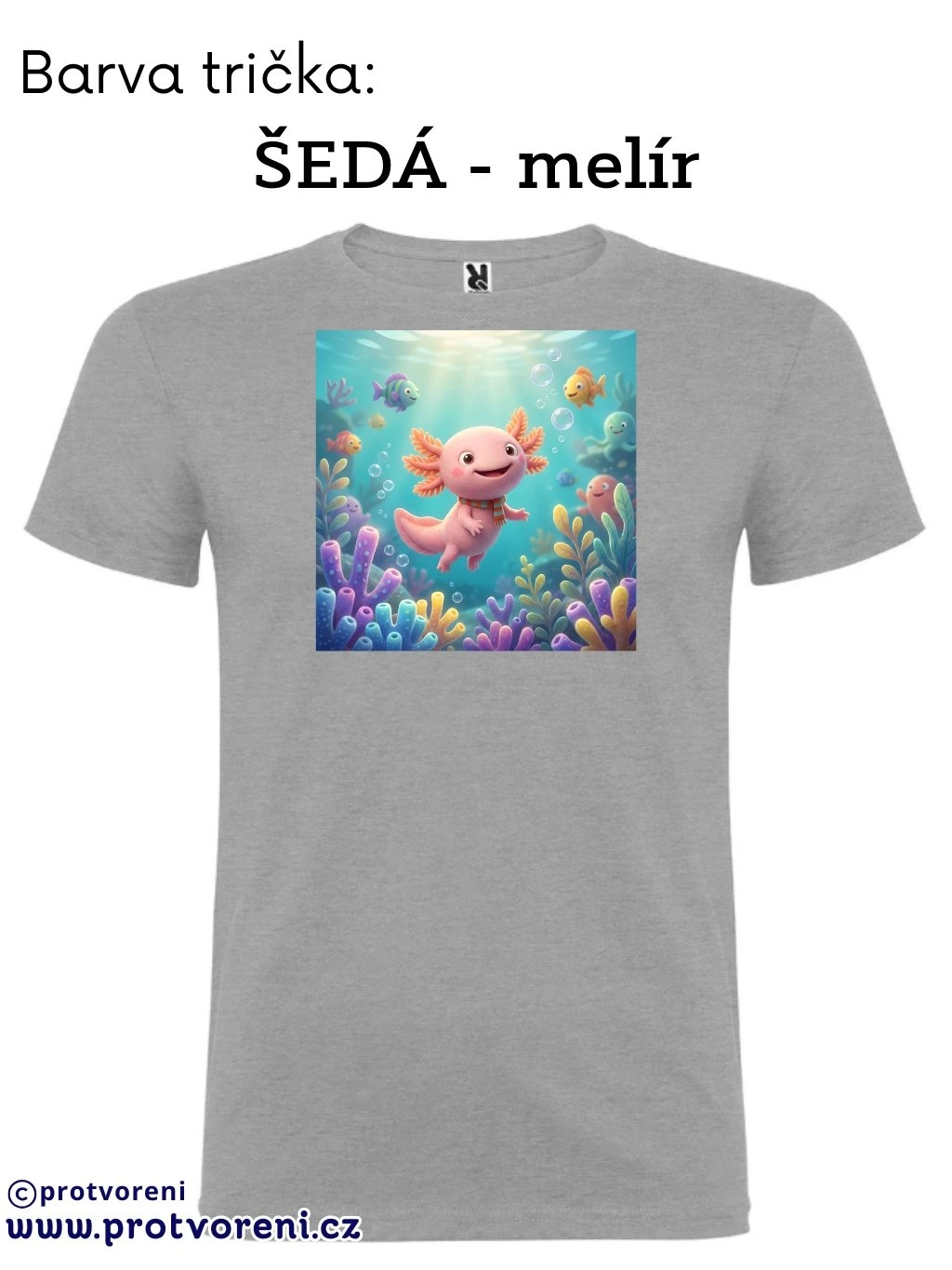 Tričko s potiskem, dětské, AXOLOTL - VODNÍ DRÁČEK, 1 ks