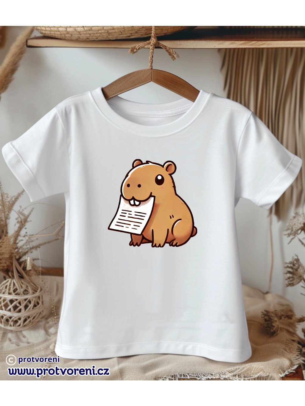 Tričko s potiskem, dětské, KAPYBARA s papírem, 1 ks