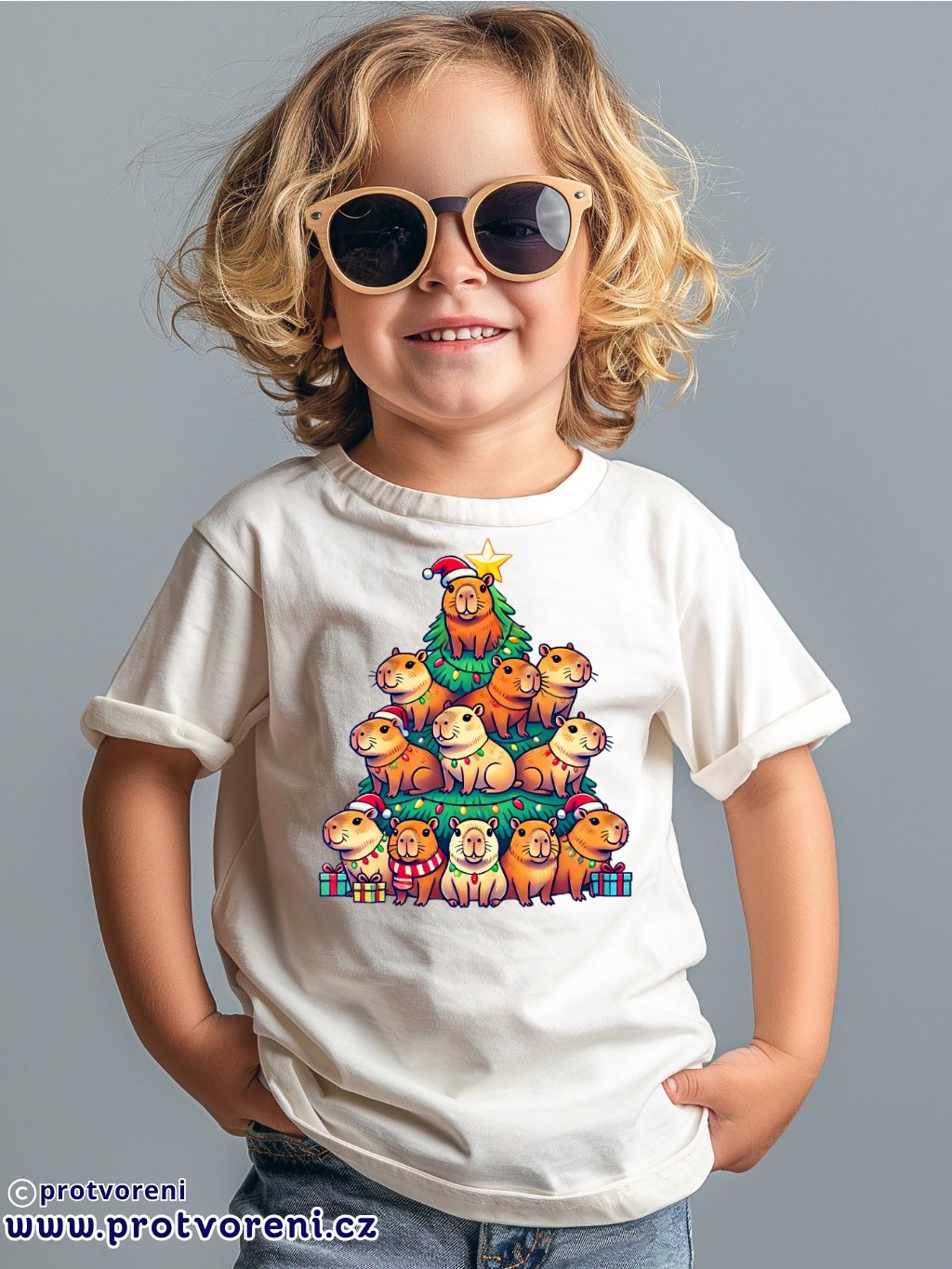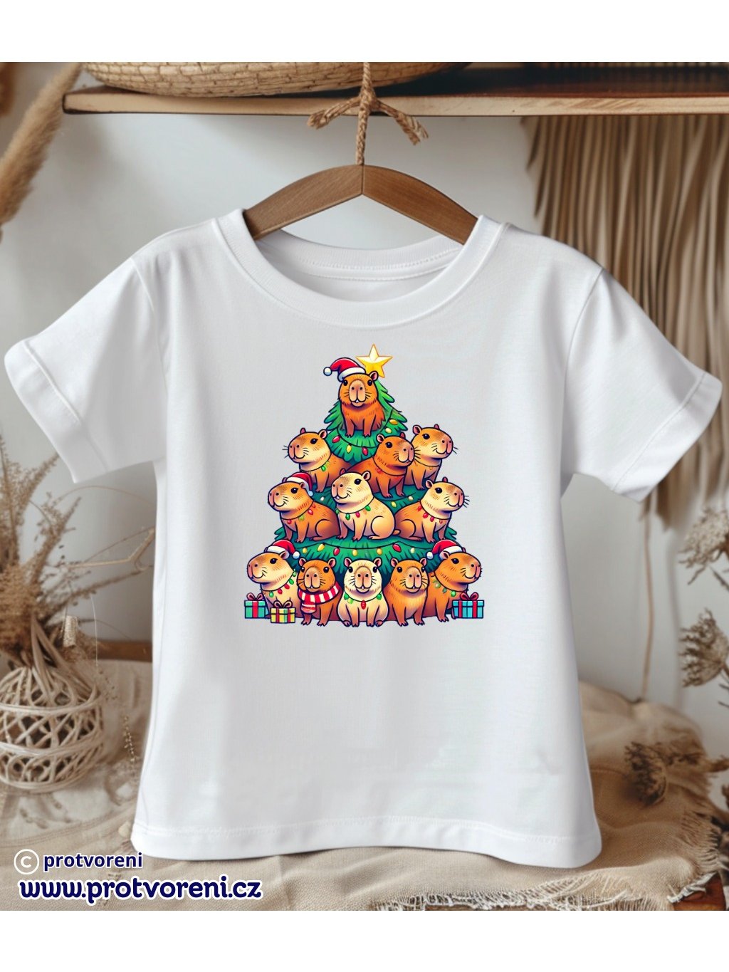 Tričko s potiskem, dětské, Kapybara - vánoční stromeček 1 ks