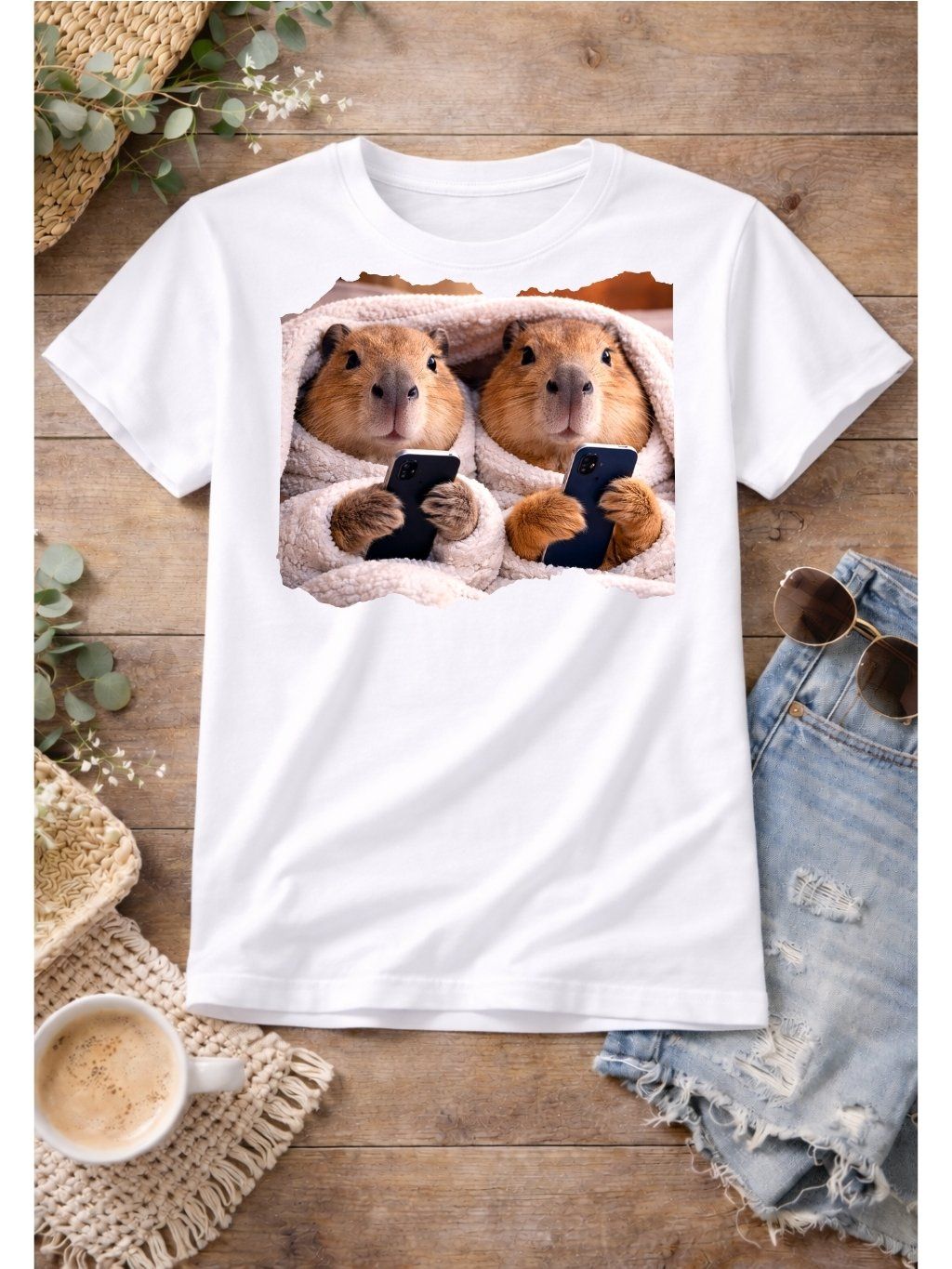 Tričko s potiskem, dětské, KAPYBARY S TELEFONEM, 1 ks