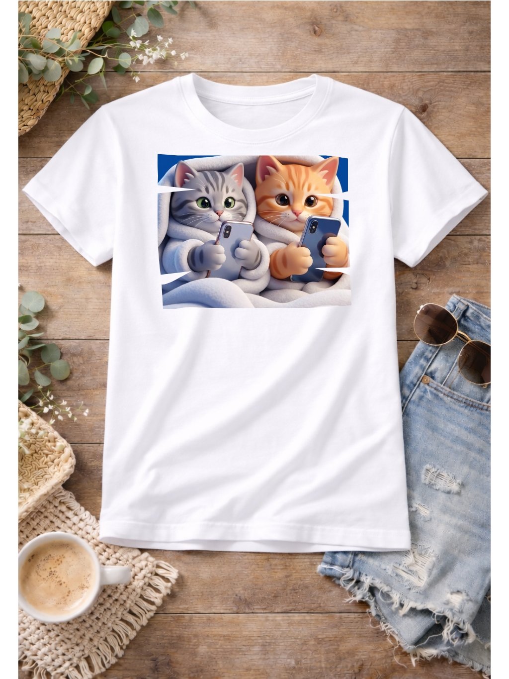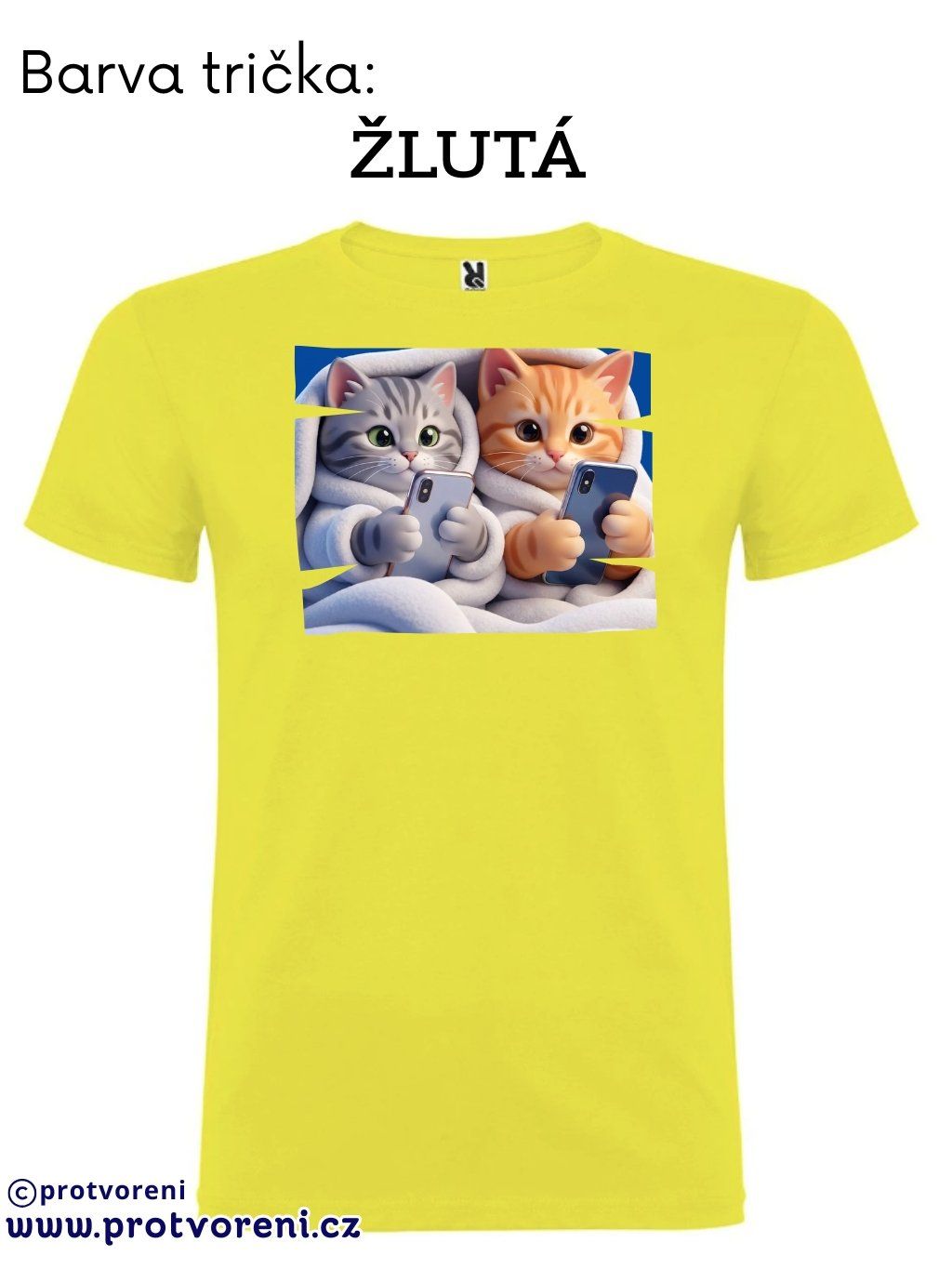 Tričko s potiskem, dětské, KOŤATA S TELEFONEM, 1 ks