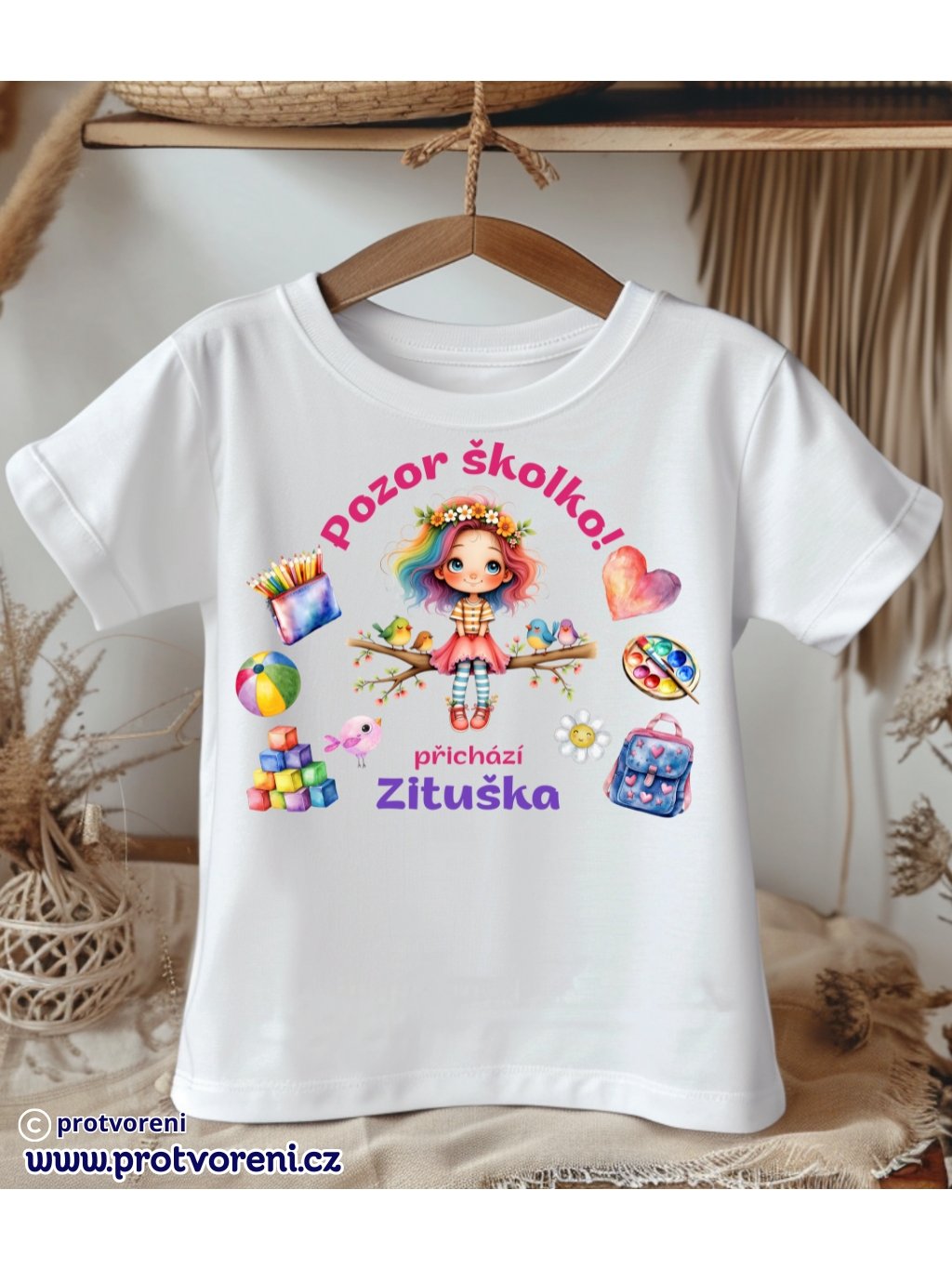 Tričko s potiskem, dětské, Pozor školko přicházi - jméno dle výběru, 1 ks