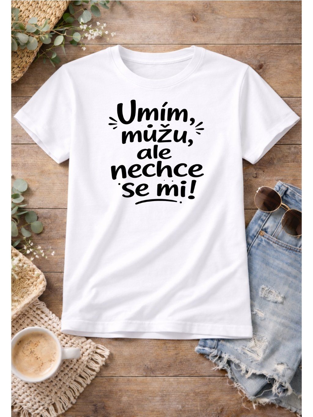 Tričko s potiskem, dětské, UMÍM, MŮŽU, ALE NECHCE SE MI!, 1 ks