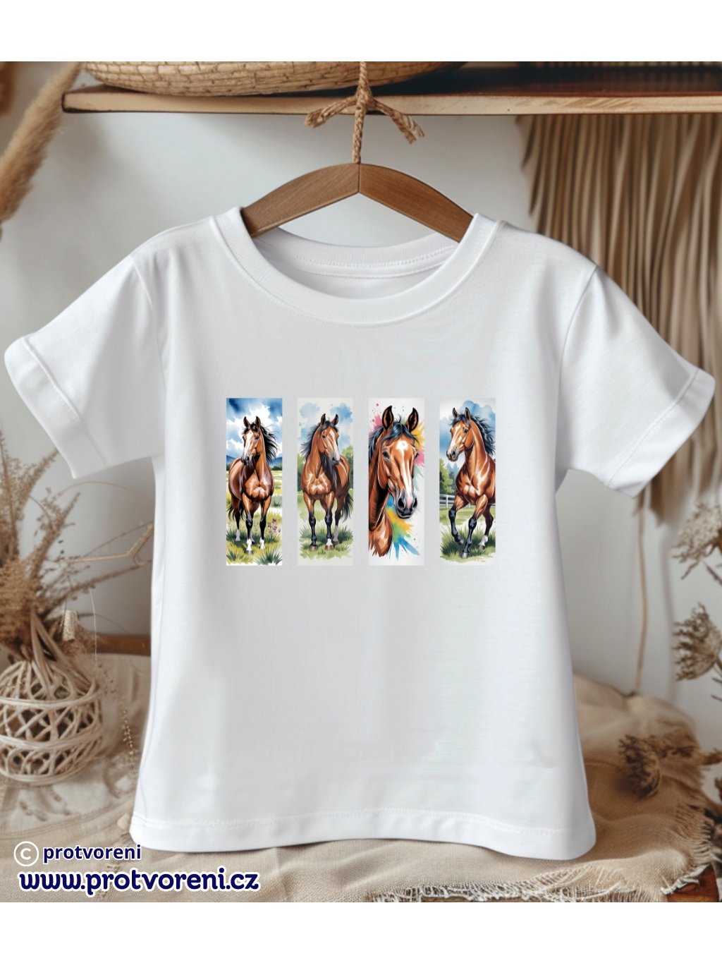 Složení: 100% bavlna. Gramáž: 155 g/m². Barva trička: bílá. Tričko s krátkým rukávem a dvojvrstvým průkrčníkem s elastanem s bočními švy. Lze prát v pračce při teplotě 40°C. Žehlit na ruby - stupeň 2. Nesušit v sušičce. Rozměr celého obrázku, vyobrazeného na produktové fotografii je pouze ilustrační. Cena za jeden kus.