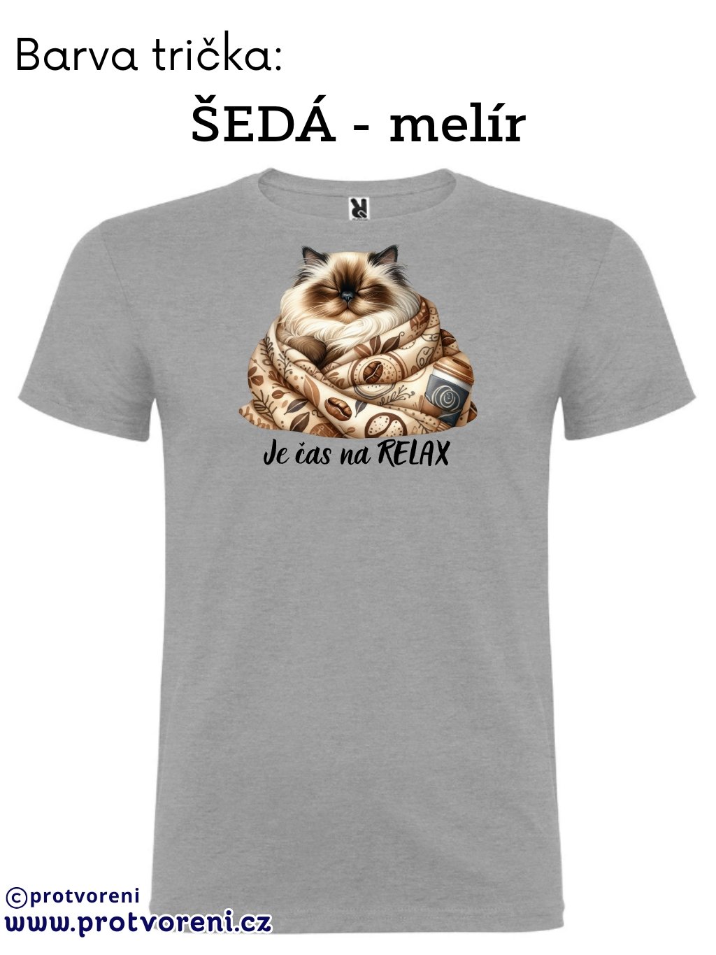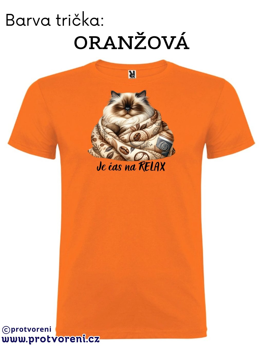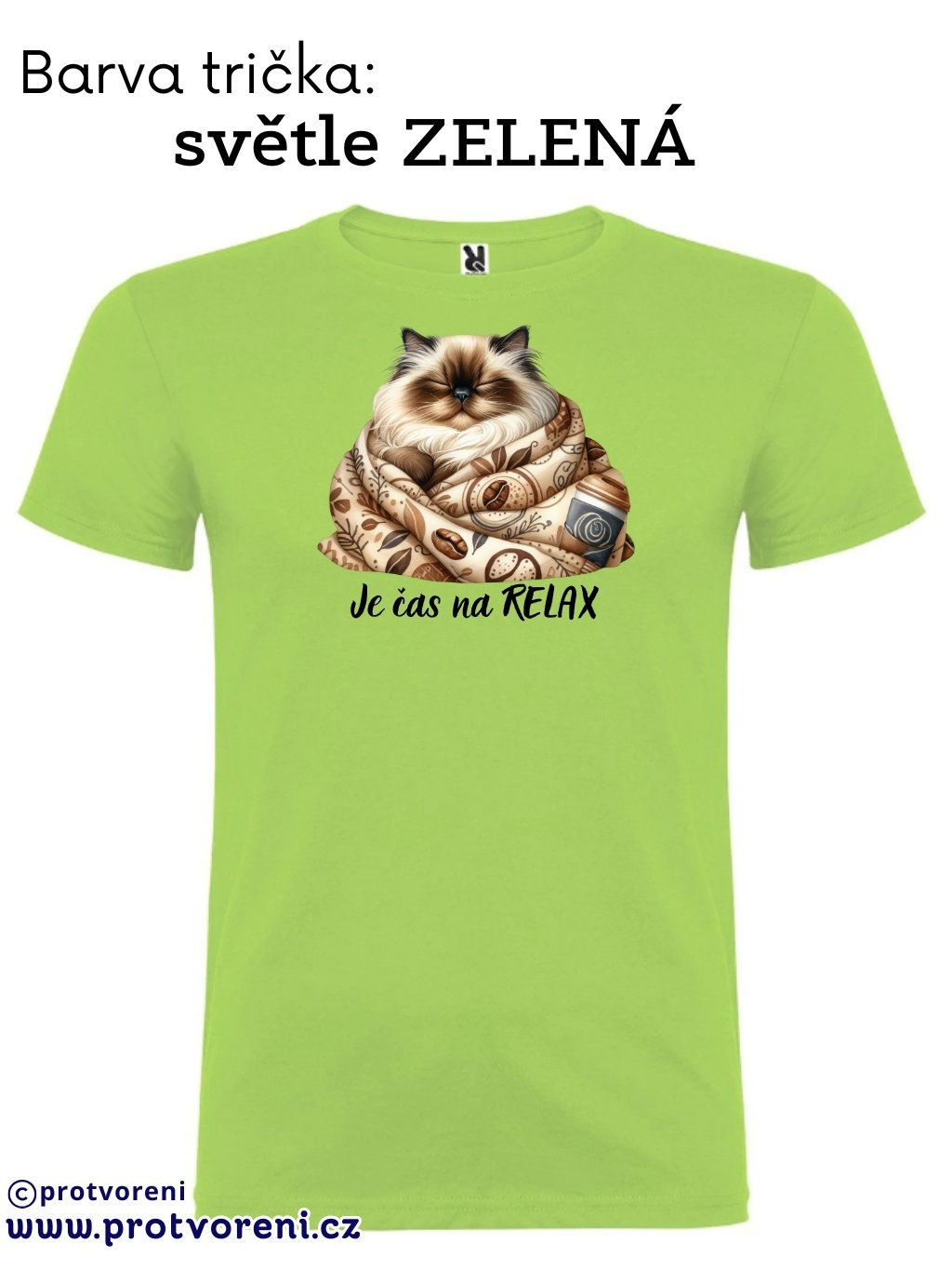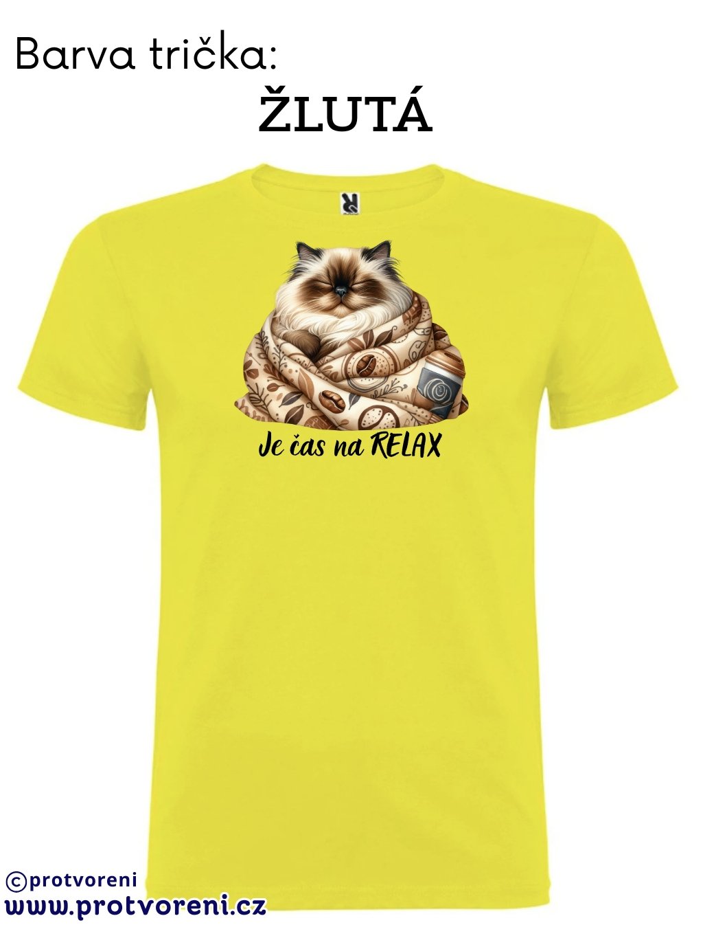 Tričko s potiskem, KOČKA - JE ČAS NA RELAX, 1 ks