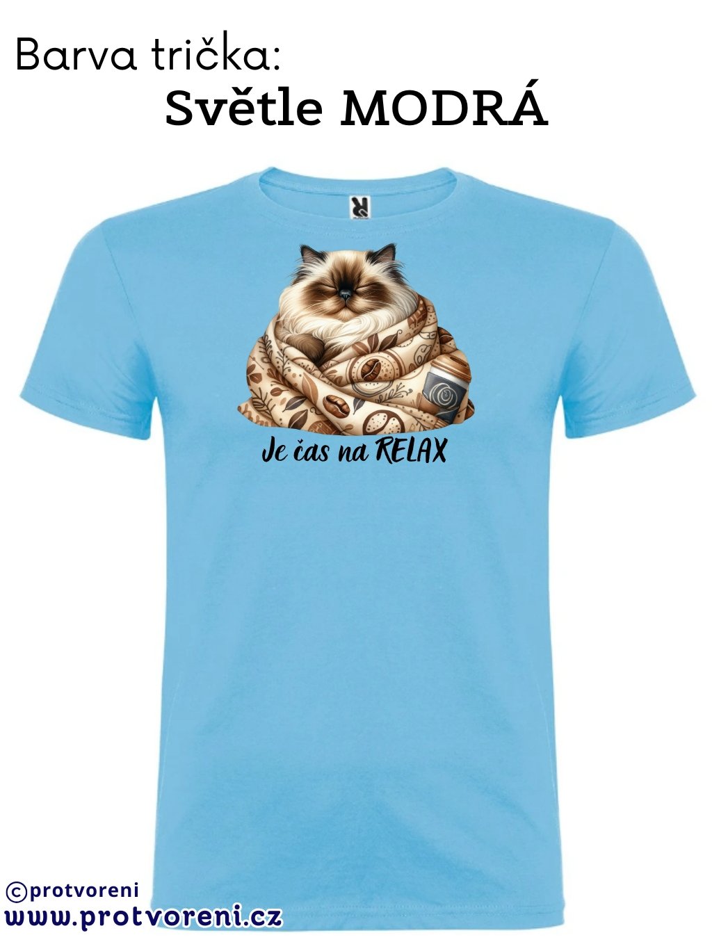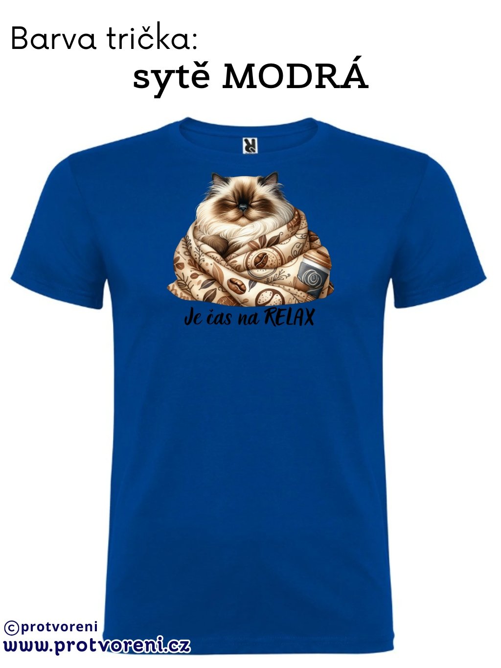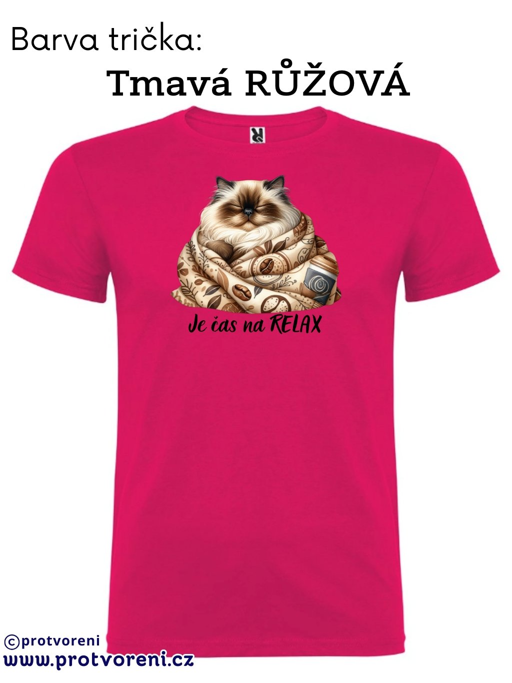 Tričko s potiskem, KOČKA - JE ČAS NA RELAX, 1 ks