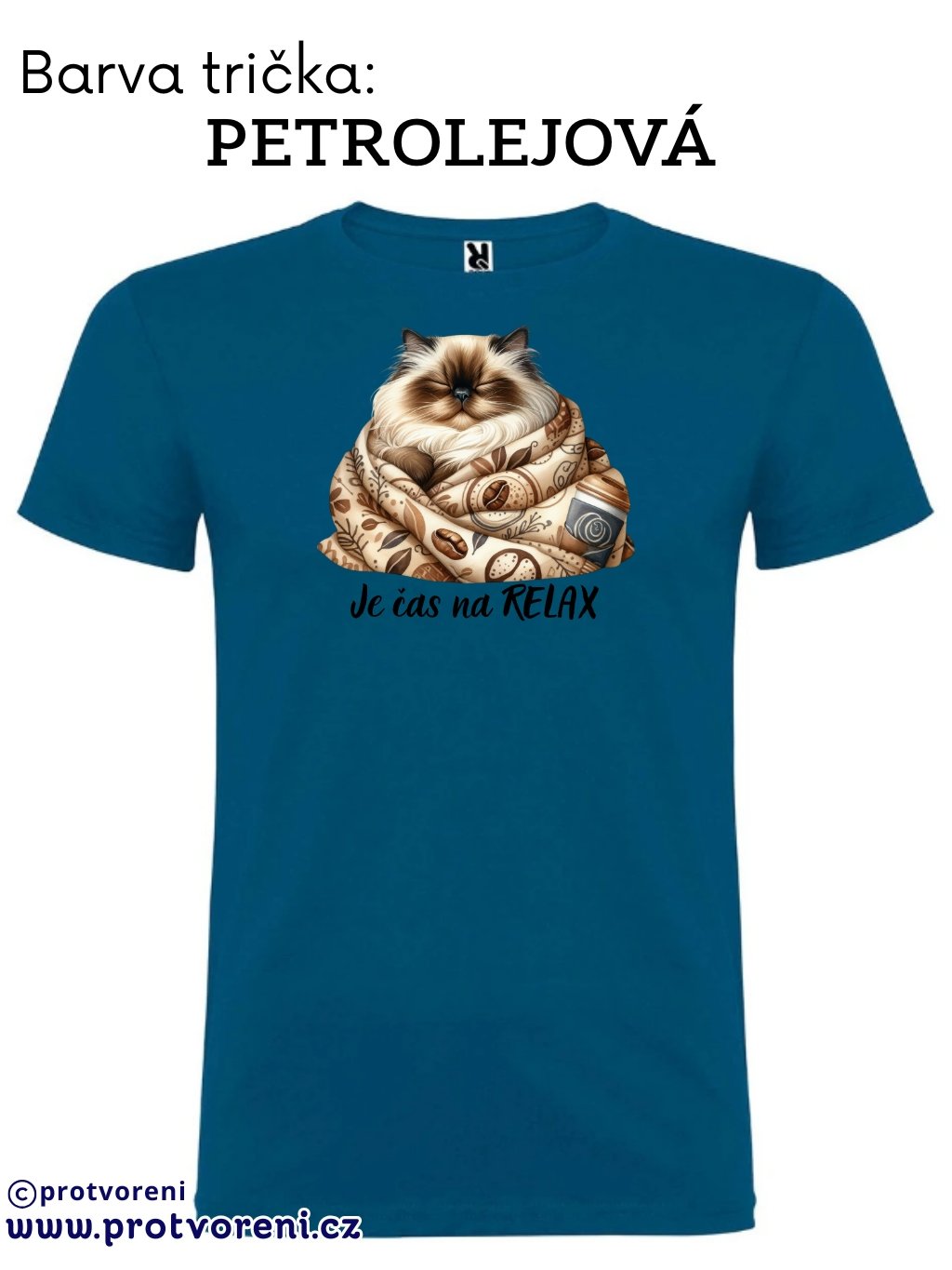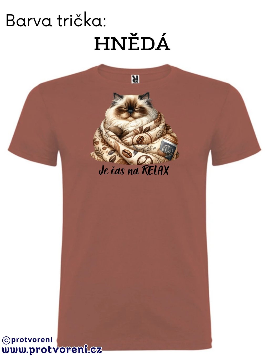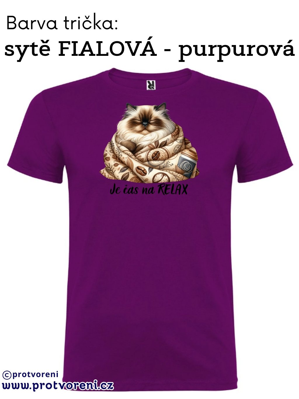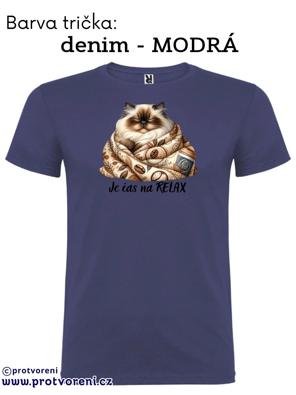 Tričko s potiskem, KOČKA - JE ČAS NA RELAX, 1 ks