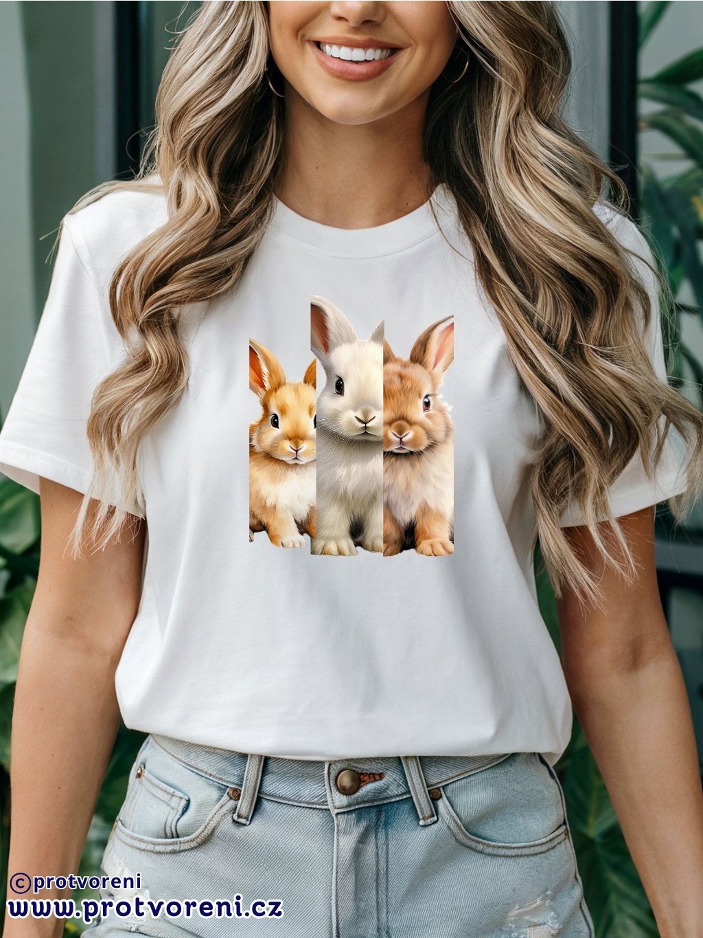Složení: 100% bavlna. Gramáž: 155 g/m². Barva trička: bílá. Tričko s krátkým rukávem a dvojvrstvým průkrčníkem s elastanem s bočními švy. Lze prát v pračce při teplotě 40°C. Žehlit na ruby - stupeň 2. Nesušit v sušičce. Rozměr celého obrázku vyobrazeného na produktové fotografii je pouze ilustrační. Cena za jeden kus.