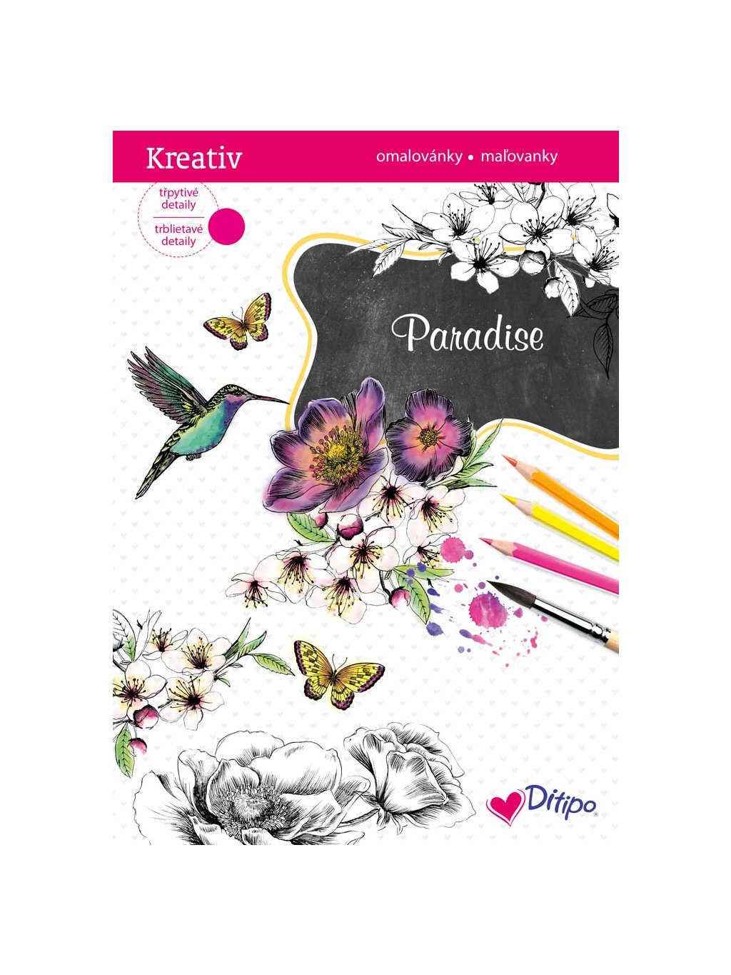Jedinečné motivy poseté třpytkami. Pevný papír pro různé techniky vybarvení, s klopou pro pohodlnější malování.