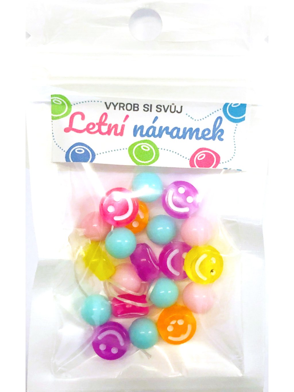 Sada obsahuje: 10x korálek s úsměvem 10x kulatý korálek (cca 9 mm), 30 cm pruženky