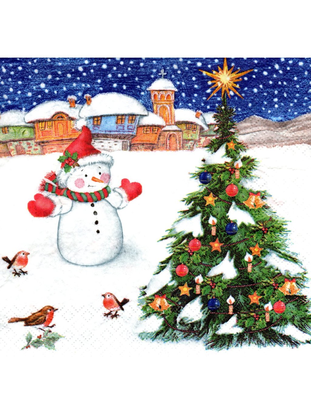UBR-E78, Ubrousek, 16x16 cm, VÁNOČNÍ STROMEČEK SE SNĚHULÁKEM, 1 kus