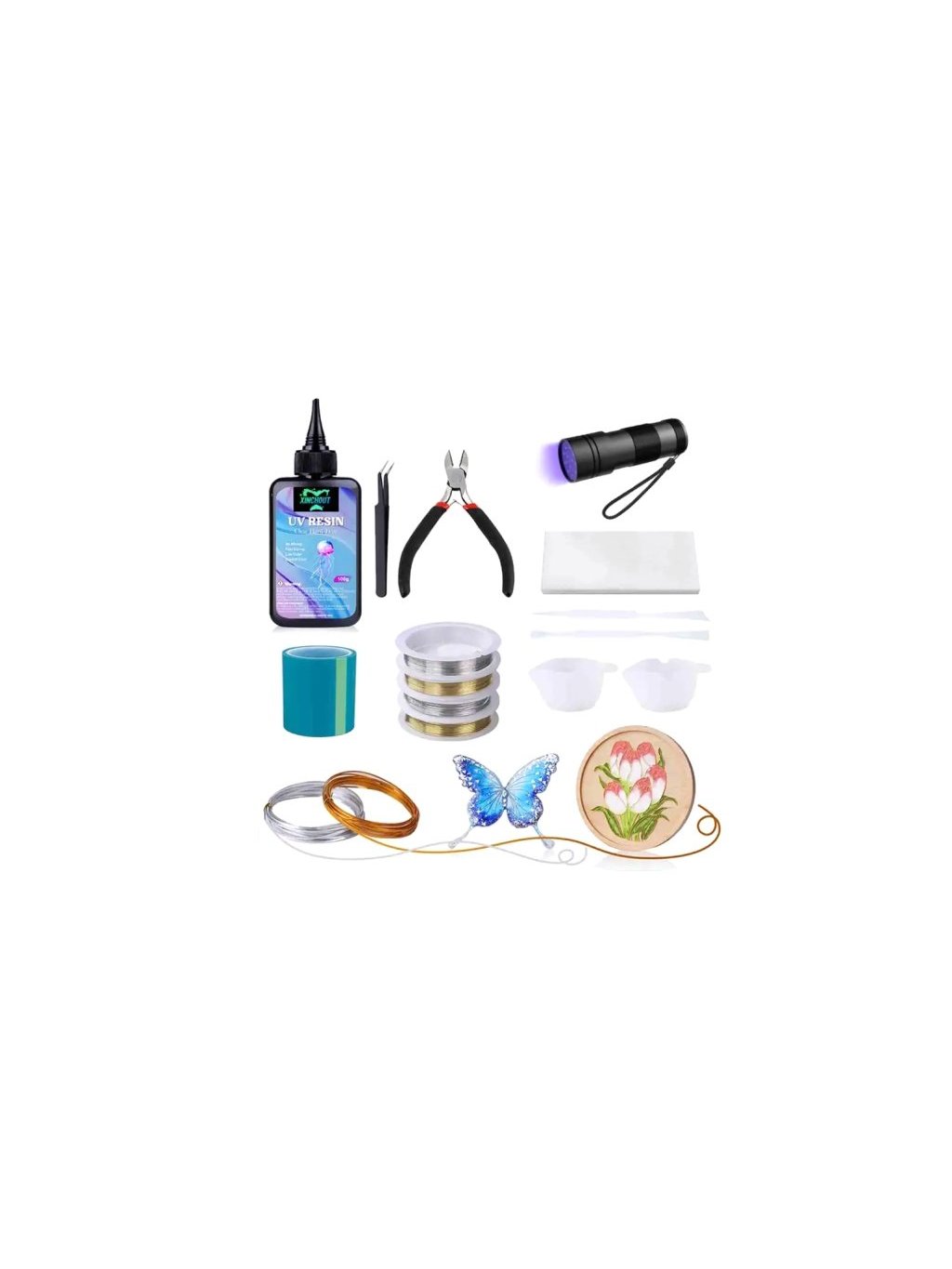 Sada UV Wire je určená k výrobě šperků z pryskyřice a drátků. Sada pracuje s UV pryskyřicí, která vytvrzuje vlivem UV záření (ultra fialové světlo) a to umělým nebo přirozeným. UV pryskyřice je jednosložková, odpadá příprava dvou složek.